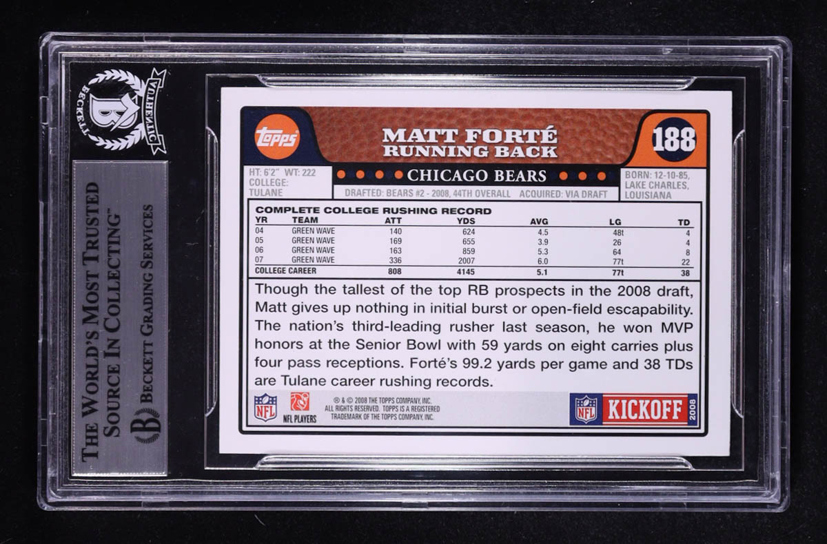 Matt Forte Signed Sticker on 2008 Topps Kickoff #188 RC (BGS)