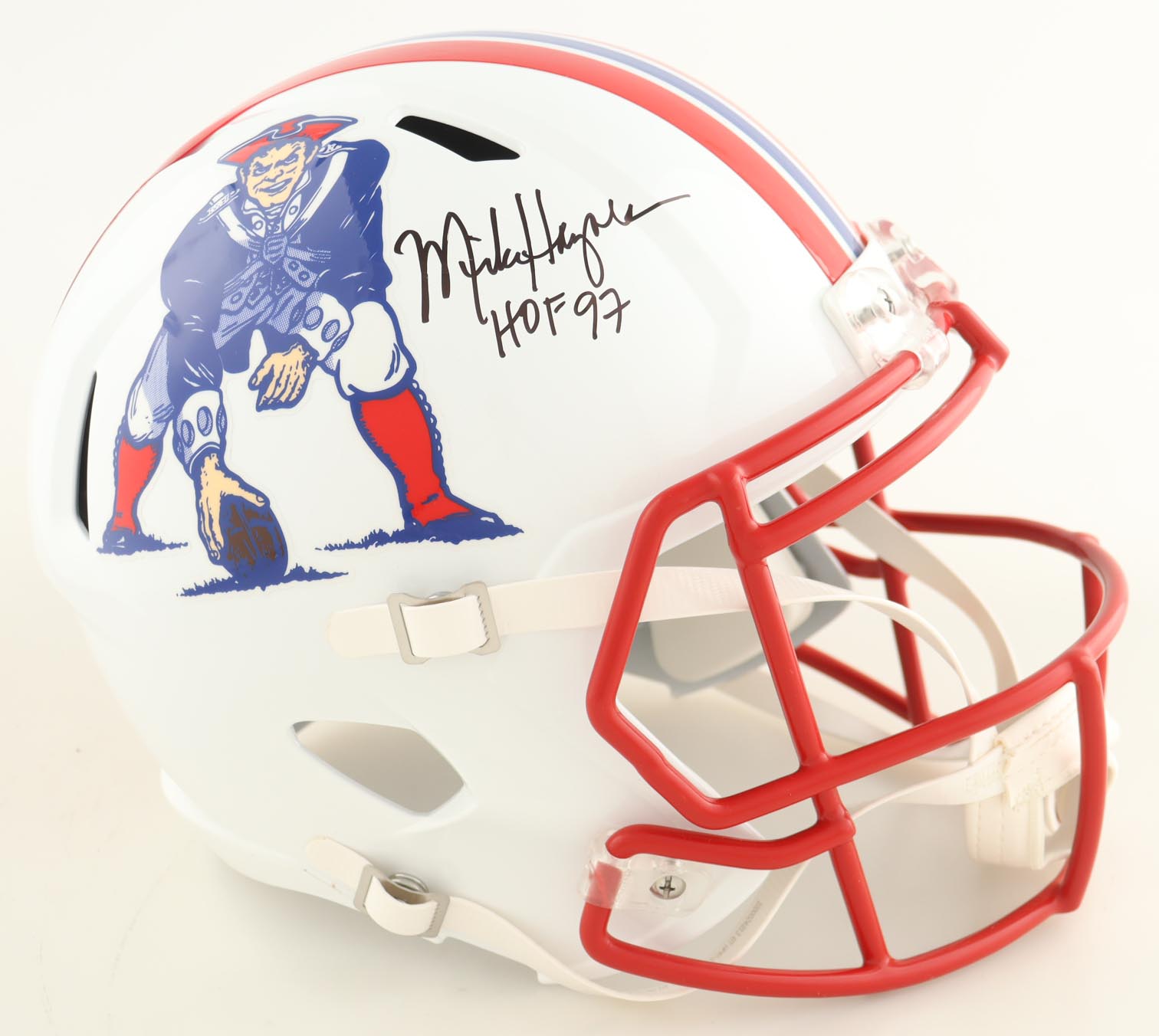 Riddell New England Patriots full-size replica speed helmet. Hand-signed and inscribed by Mike Haynes (HOF).