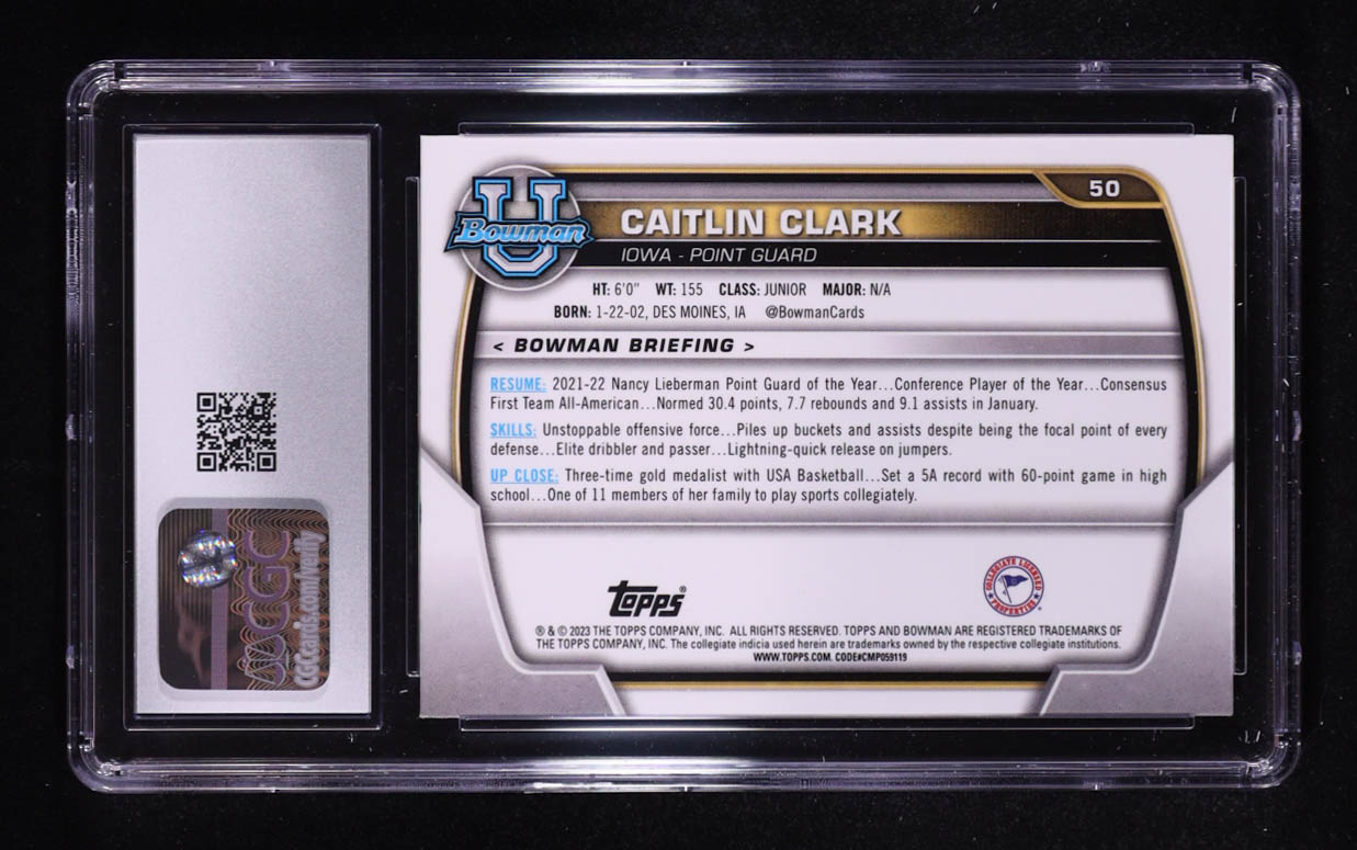 Caitlin Clark 2022-23 Bowman Chrome University #50 RC (CGC 9)