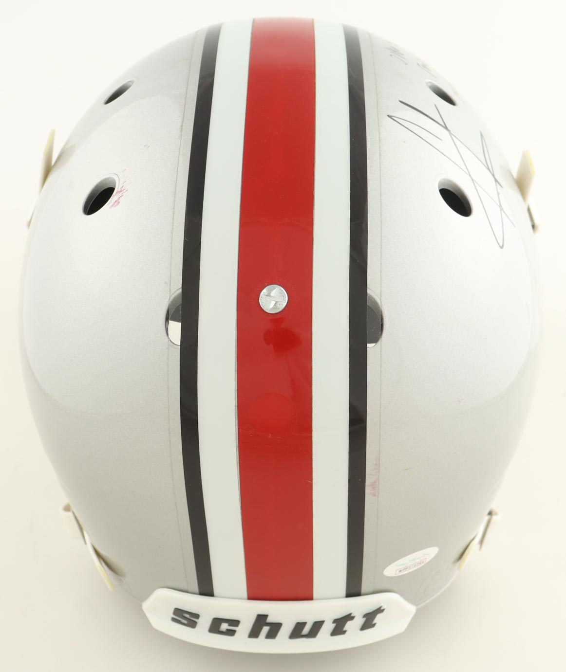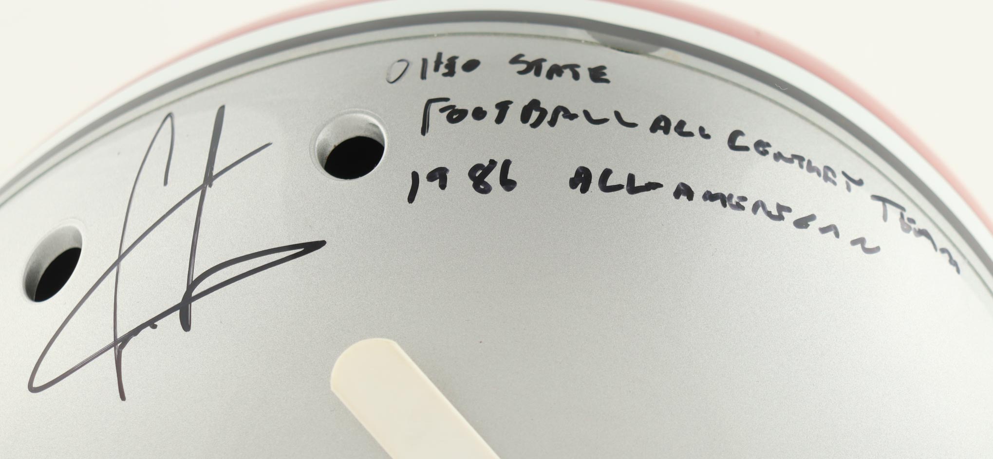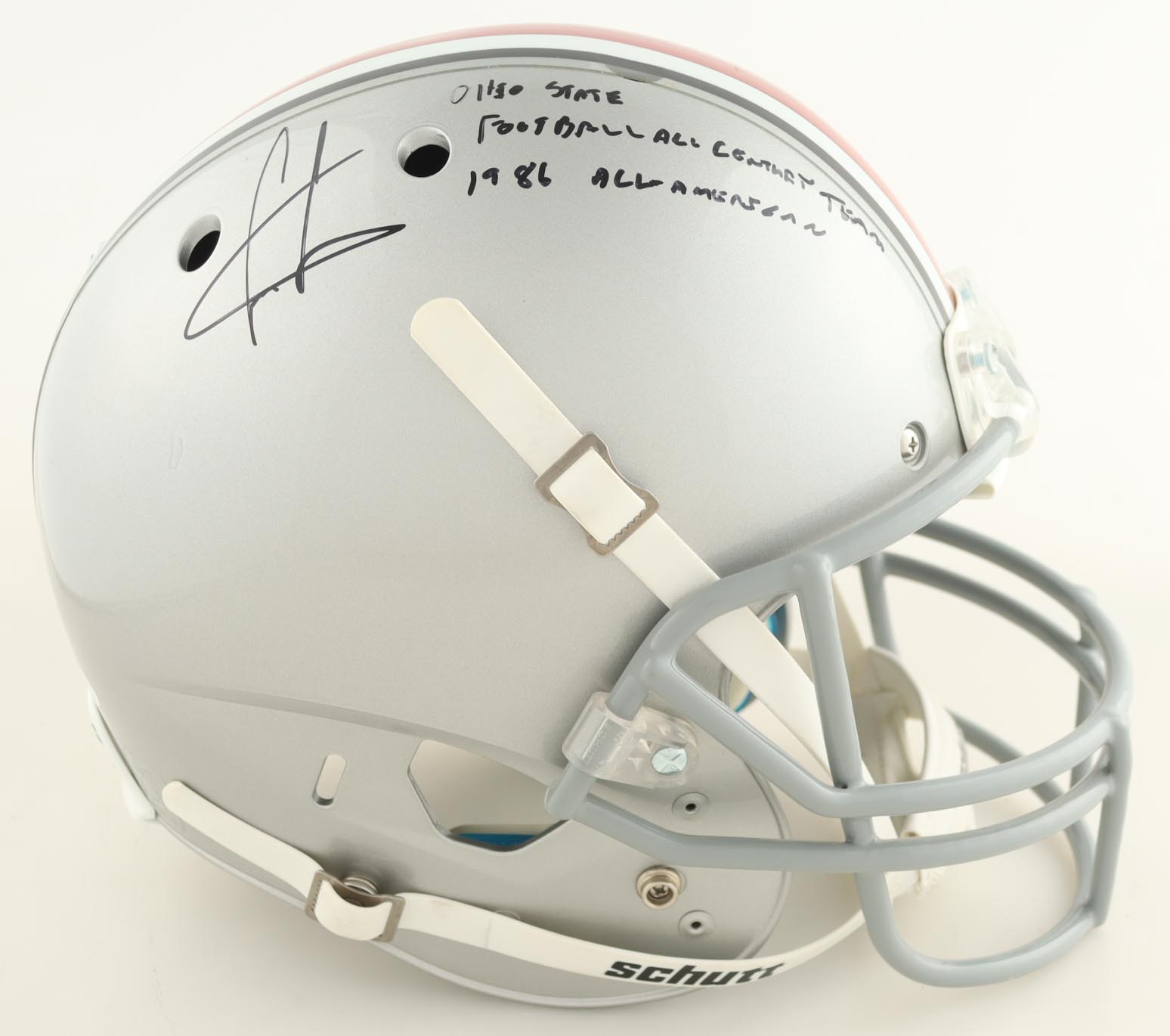 Schutt Ohio State Buckeyes full-size replica helmet. Hand-signed and inscribed by Cris Carter.