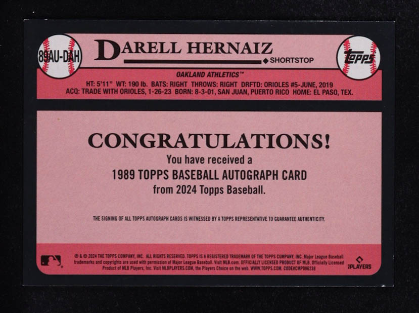 Darell Hernaiz 2024 Topps Update '89 Topps Autographs #89AUDAH RC