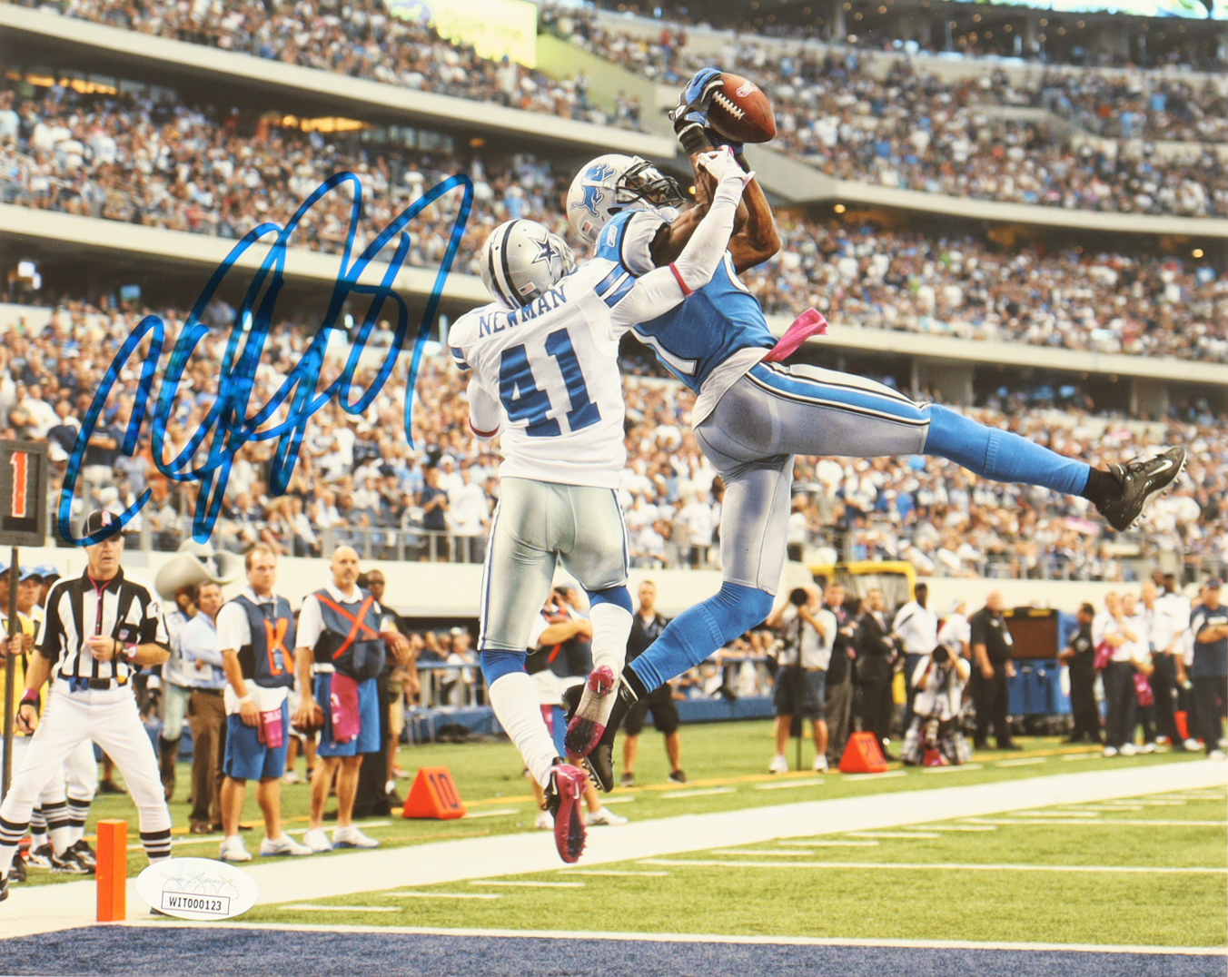 Photo measures 8" x 10" in size and has been hand-signed by Calvin Johnson (Detroit Lions, HOF).