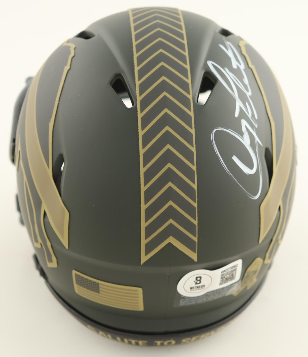 Riddell Buffalo Bills Salute to Service Alternate speed mini helmet. Hand-signed by Doug Flutie.