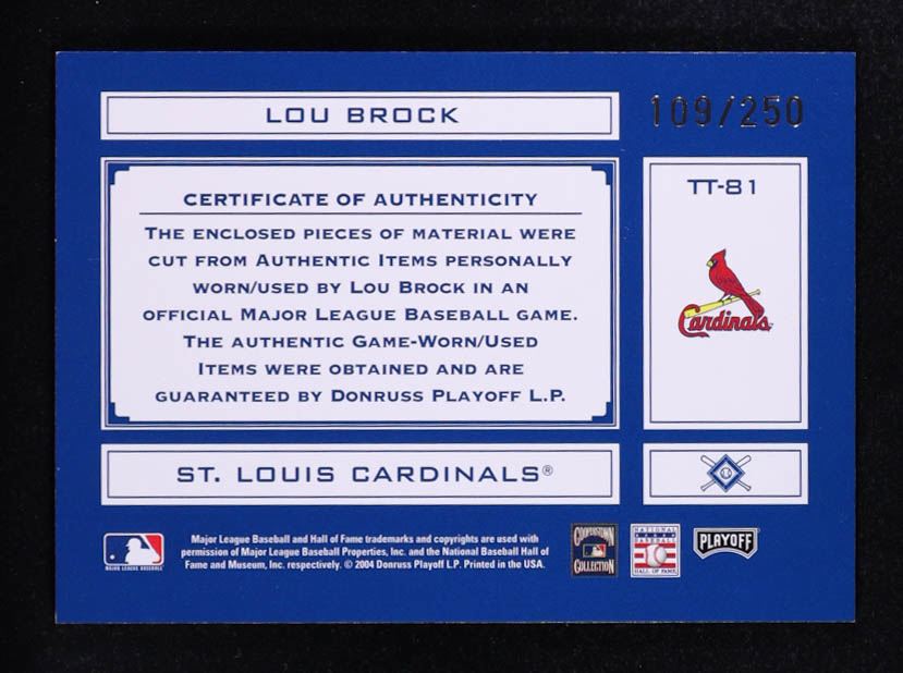 Lou Brock 2004 Absolute Memorabilia Tools of the Trade Blue #TT81 #109/250