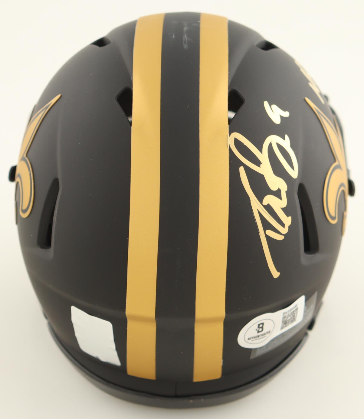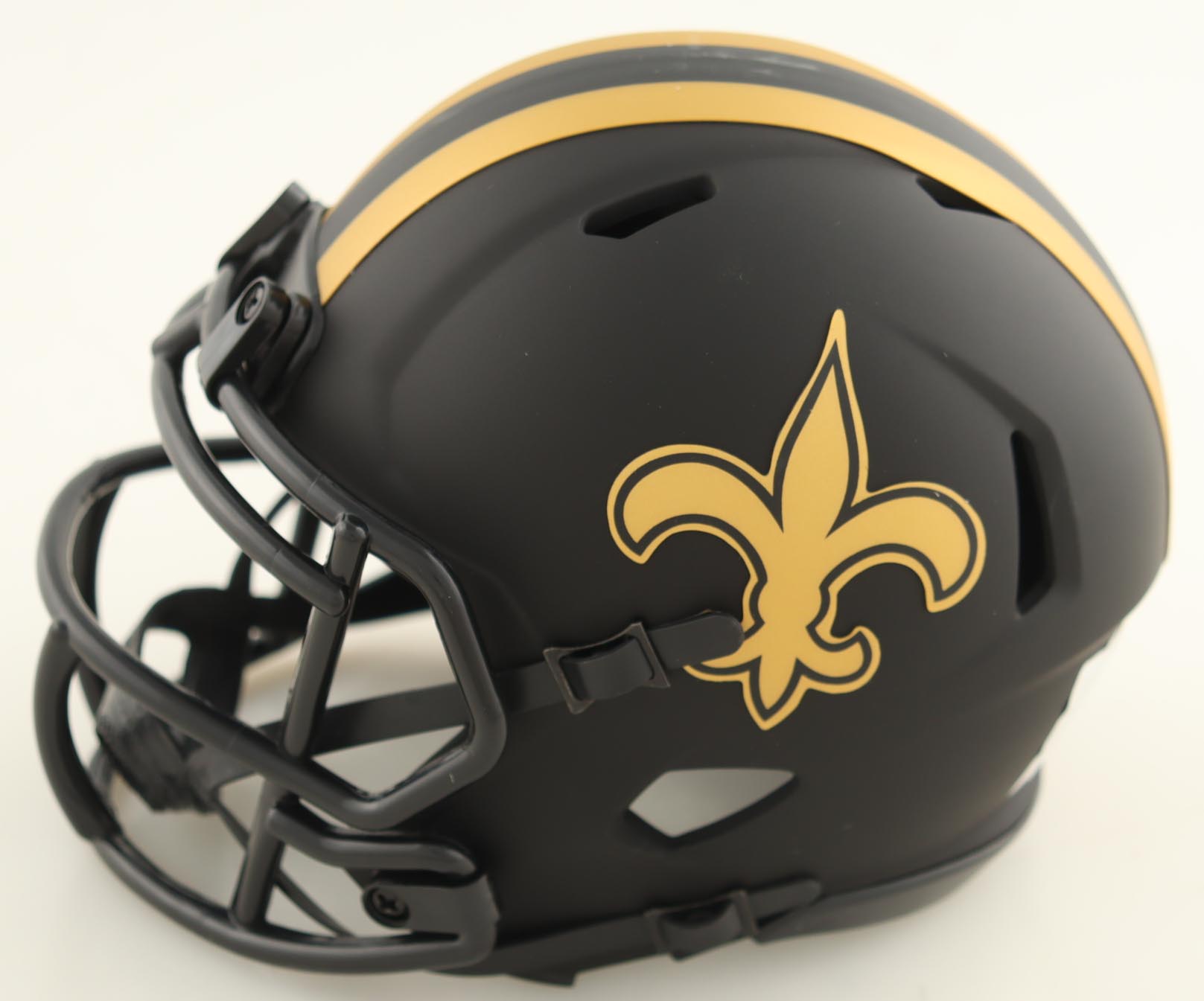 Riddell New Orleans Saints Eclipse Alternate Speed Mini Helmet. Hand-signed and inscribed by Drew Brees.