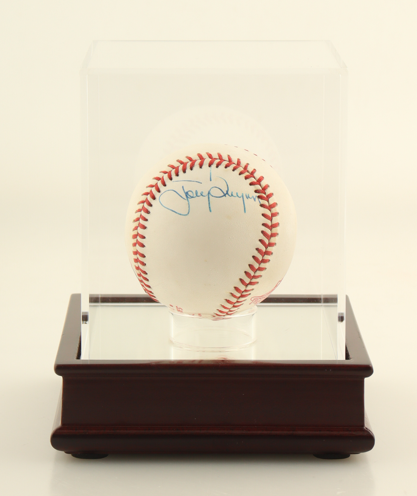 Rawlings Official 1988 World Series baseball. Hand-signed by Tony Gwynn (D. 2014, San Diego Padres, HOF). Display case is included as shown.