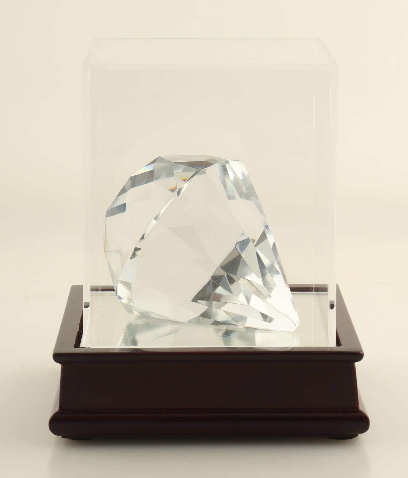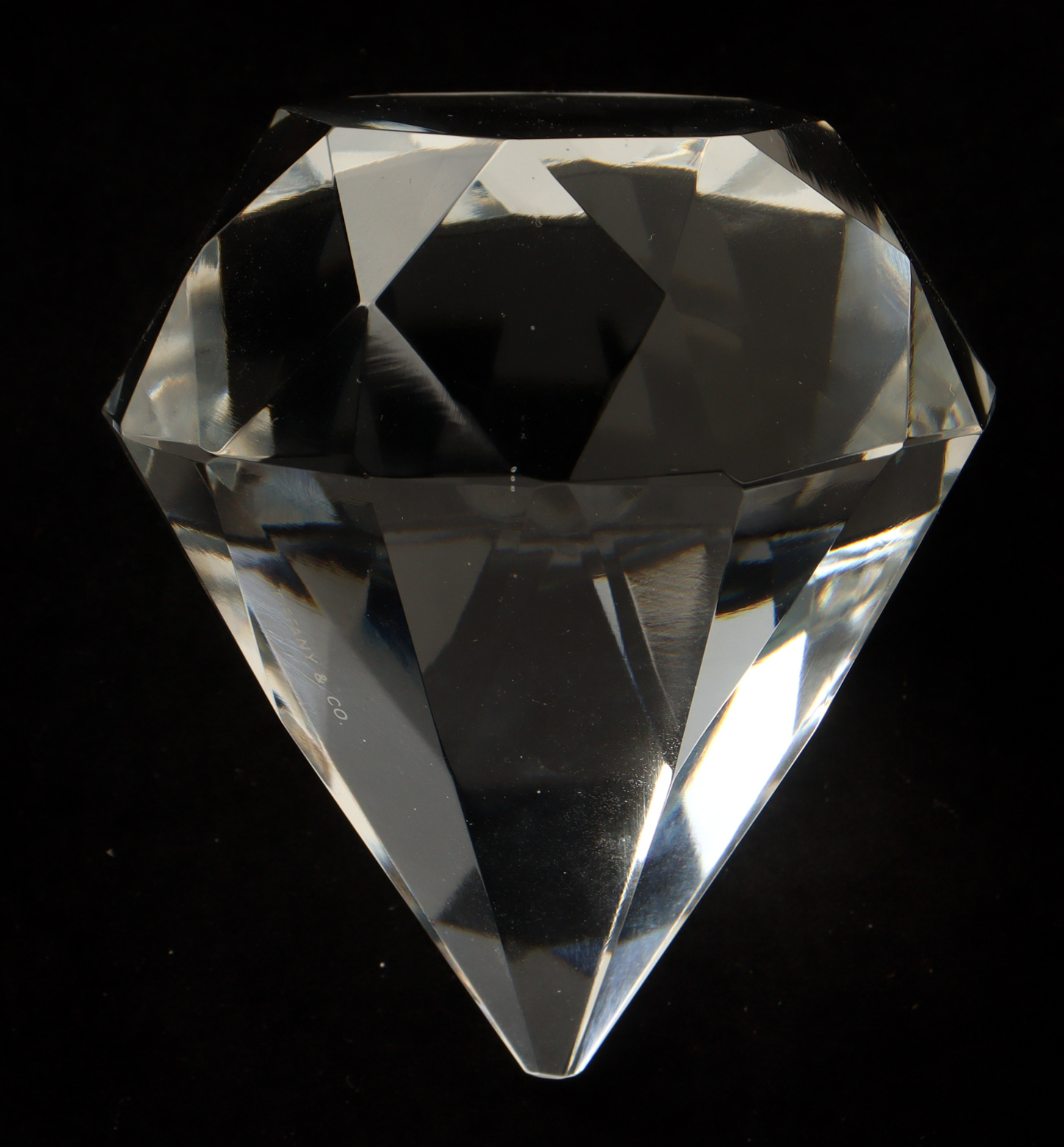 Tiffany & Co. Lead Crystal Diamond With Wood & Acrylic Display Case