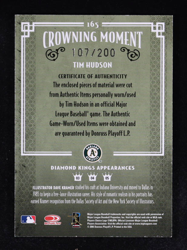 Tim Hudson 2005 Diamond Kings Materials Bronze #165 #107/200 Bat-Jsy