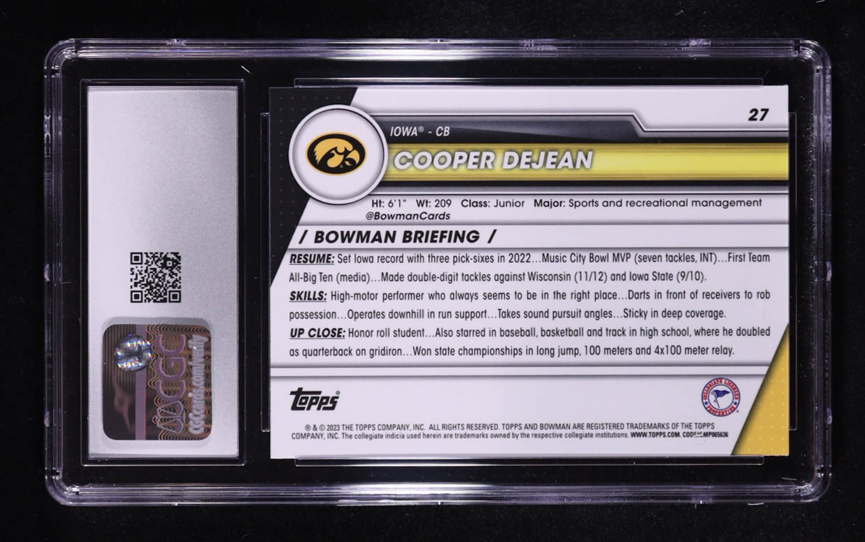 Cooper DeJean 2023 Bowman Chrome University #27 RC (CGC 10)
