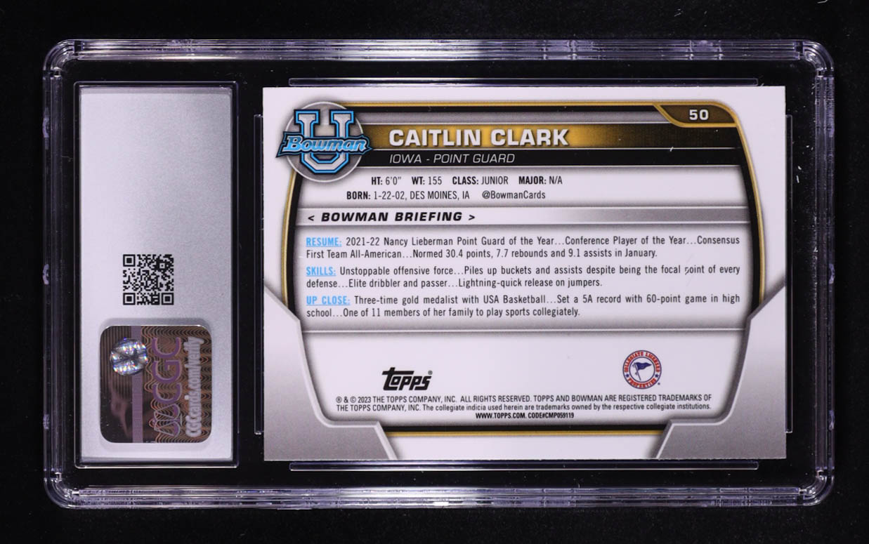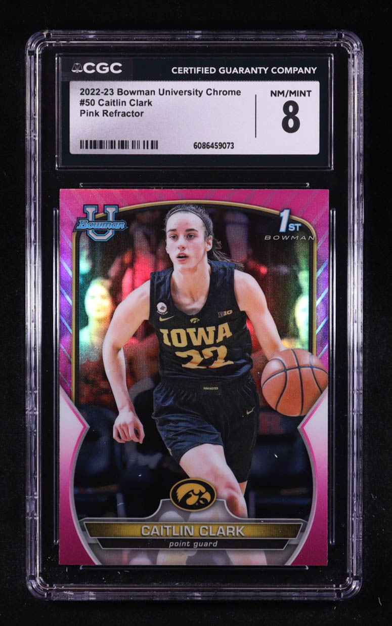 Caitlin Clark 2022-23 Bowman Chrome University Pink Refractors #50 RC (CGC 8)