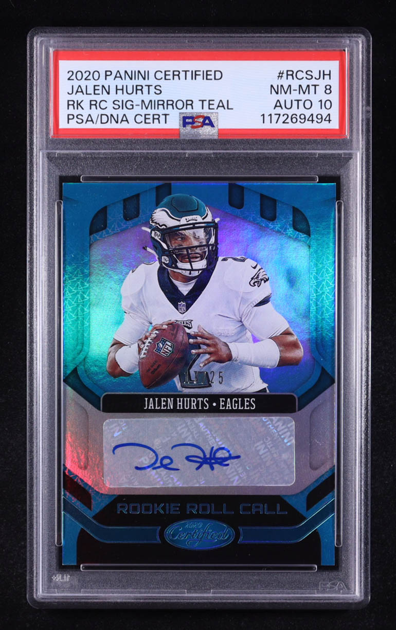 Jalen Hurts 2020 Certified Rookie Roll Call Signatures Mirror Teal #12 #17/25 RC (PSA 8 | Auto 10)