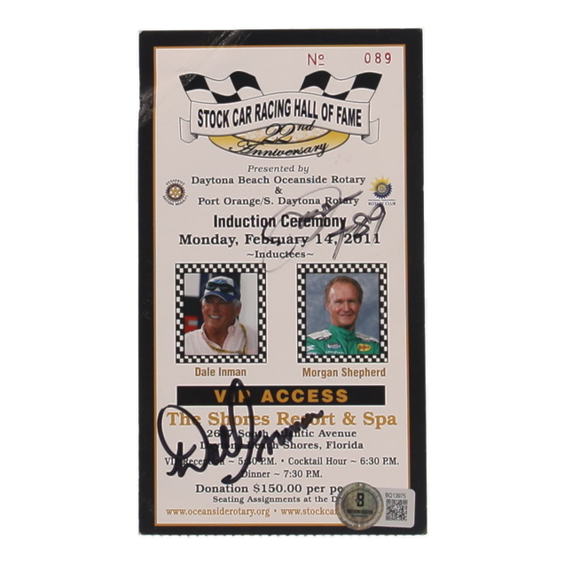 Dale Inman & Morgan Shepherd Signed Stock Car Racing Hall of Fame Induction Ceremony VIP 4x7 Ticket (Beckett)