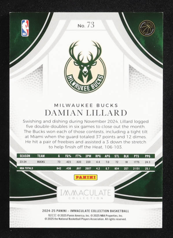 Damian Lillard 2024-25 Immaculate Collection International Red #73 #21/27