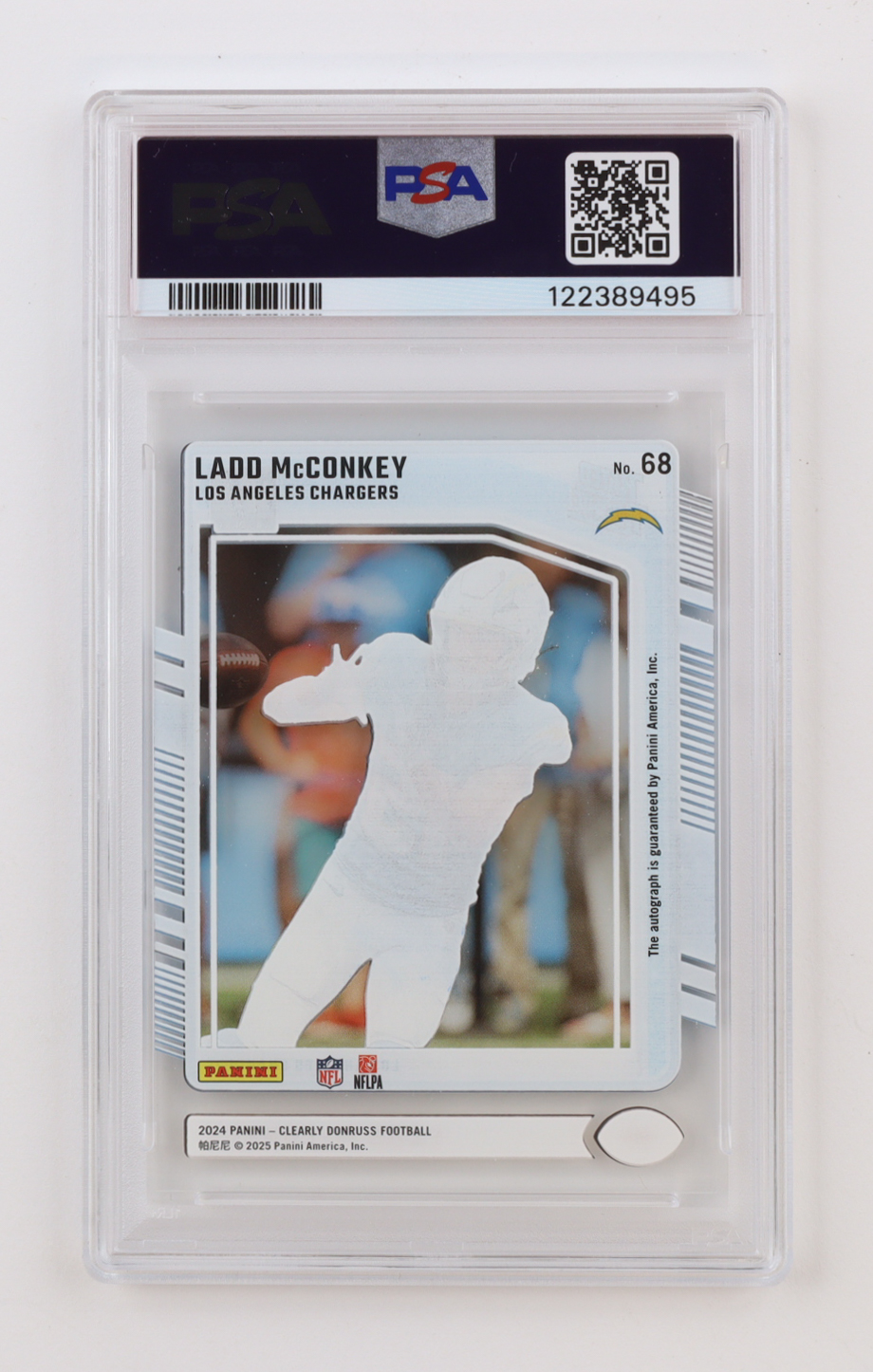 Ladd McConkey 2024 Clearly Donruss Clearly Rated Rookie Autographs #68 RC (PSA 8)