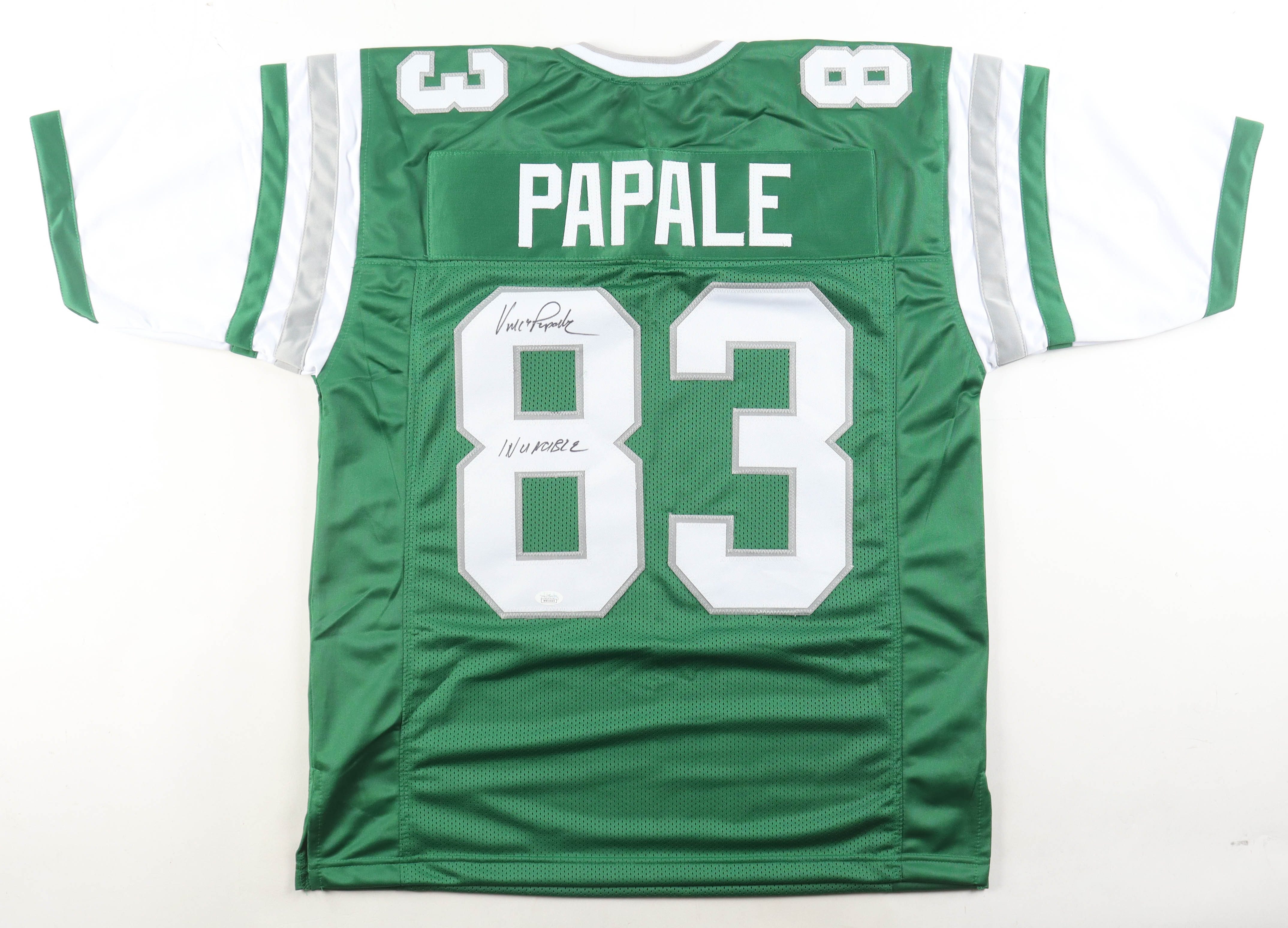 Custom jersey with everything sewn on, size XL. Hand-signed and inscribed by Vince Papale (Philadelphia Eagles).