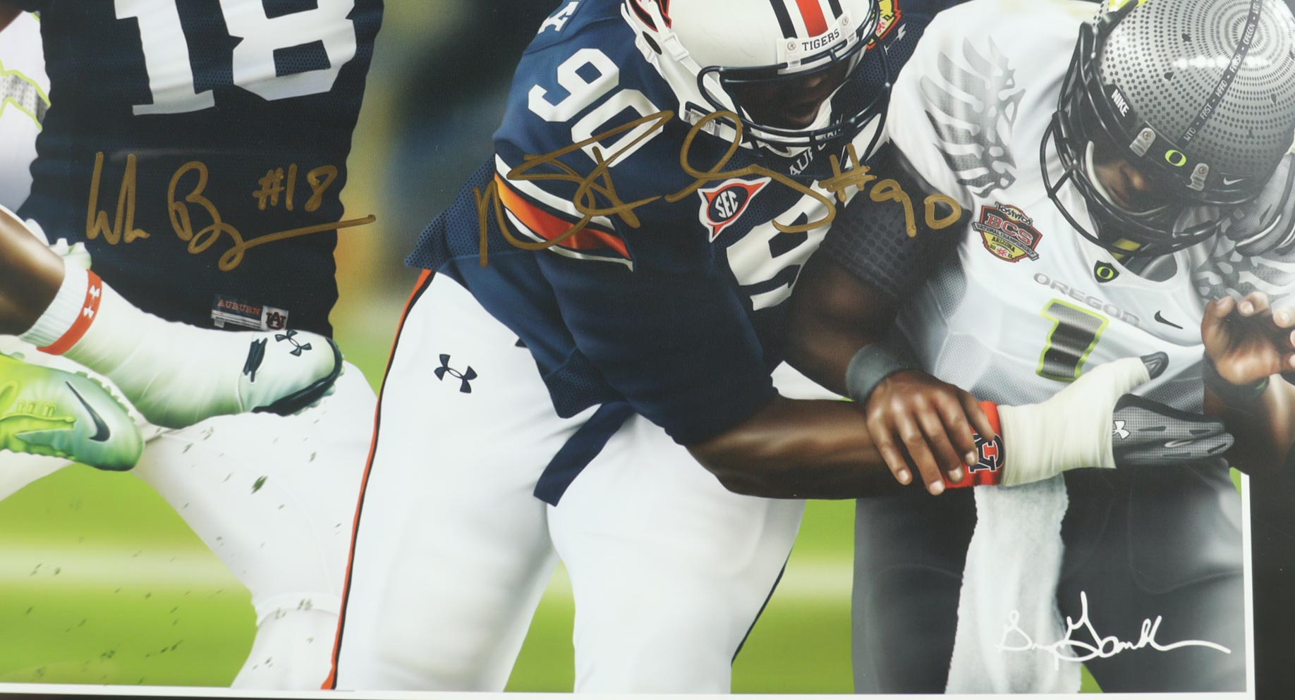 Custom frame measures approximately 29" x 33" in size and has been hand-signed by Cam Newton, Kodi Burns, Wes Byrum, Nick Fairley, and Greg Gamble (Artist). The lithograph is limited edition and has been hand-numbered #668/3,000. Please note, there is scuffing throughout the frame.