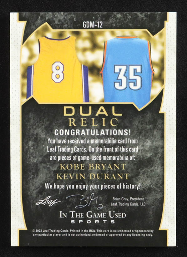 Kobe Bryant / Kevin Durant 2022 Leaf ITG Used Sports Dual Relic Red Pattern #GDM12 #38/45
