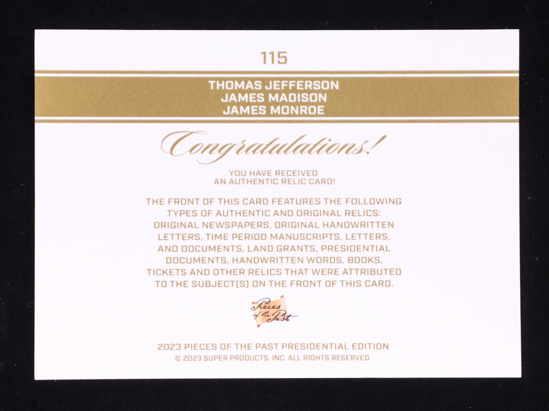 Thomas Jefferson / James Madison / James Monroe 2023 Pieces of the Past Historical Premium Edition Relics Trio #115