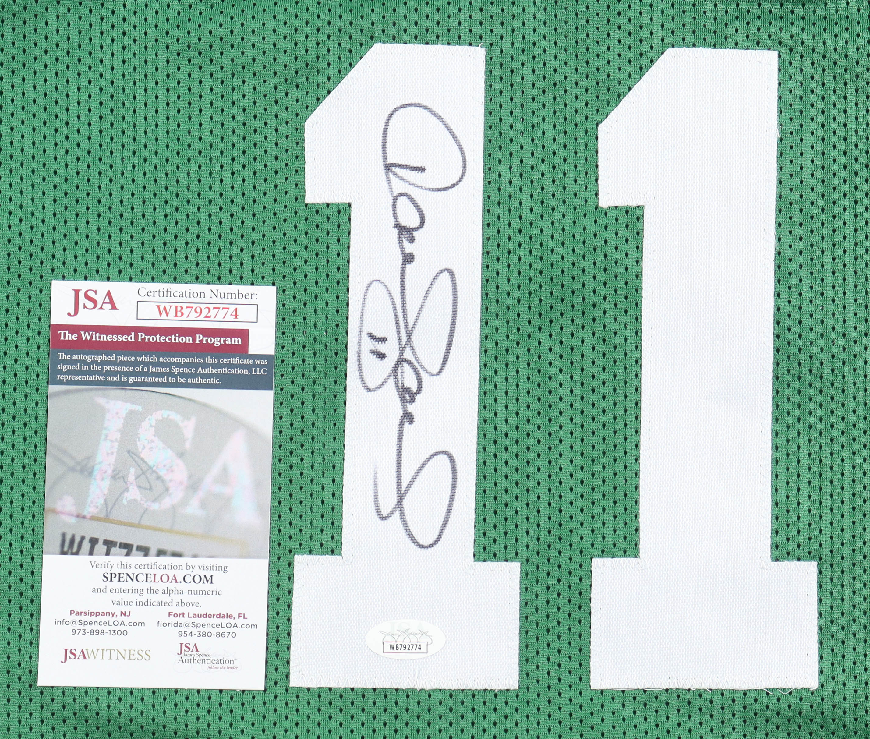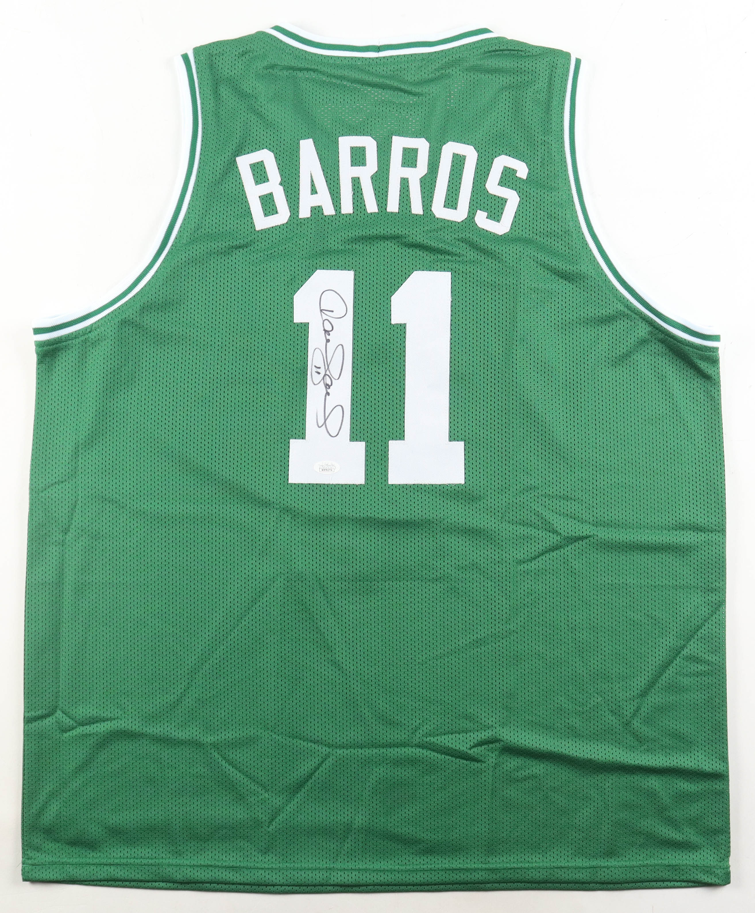 Custom jersey with everything sewn on, size XL. Hand-signed by Dana Barros (Boston Celtics).