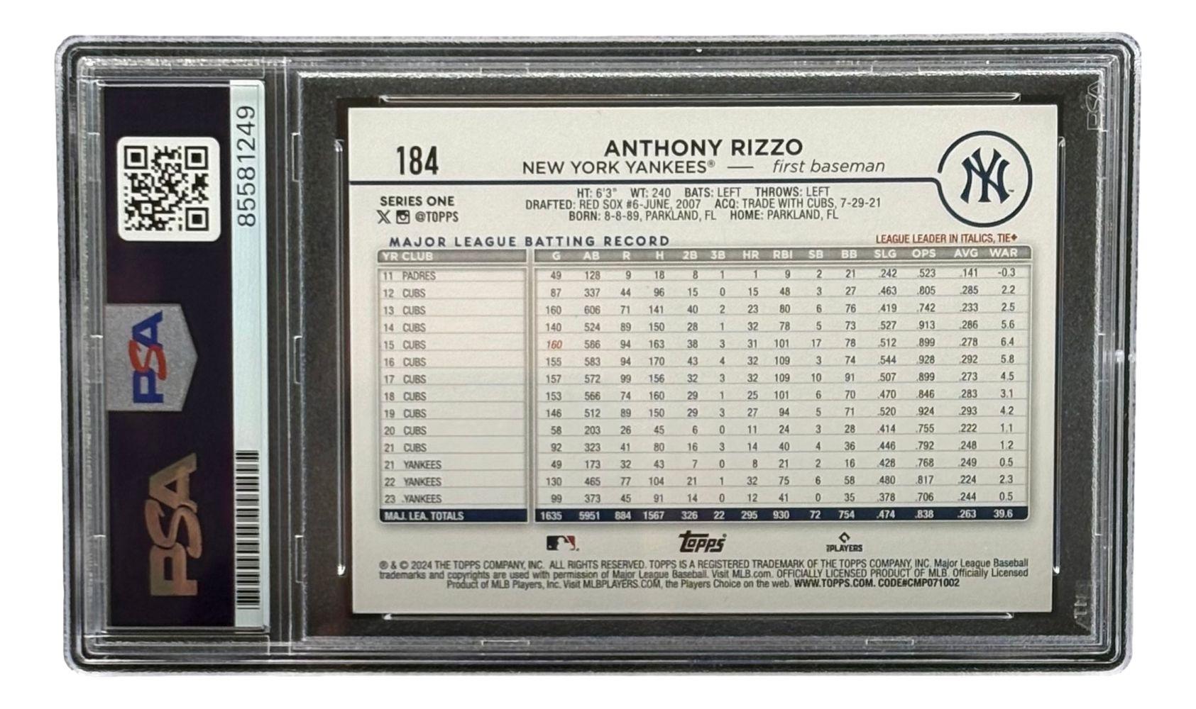 Anthony Rizzo Signed 2024 Topps #184 (PSA)