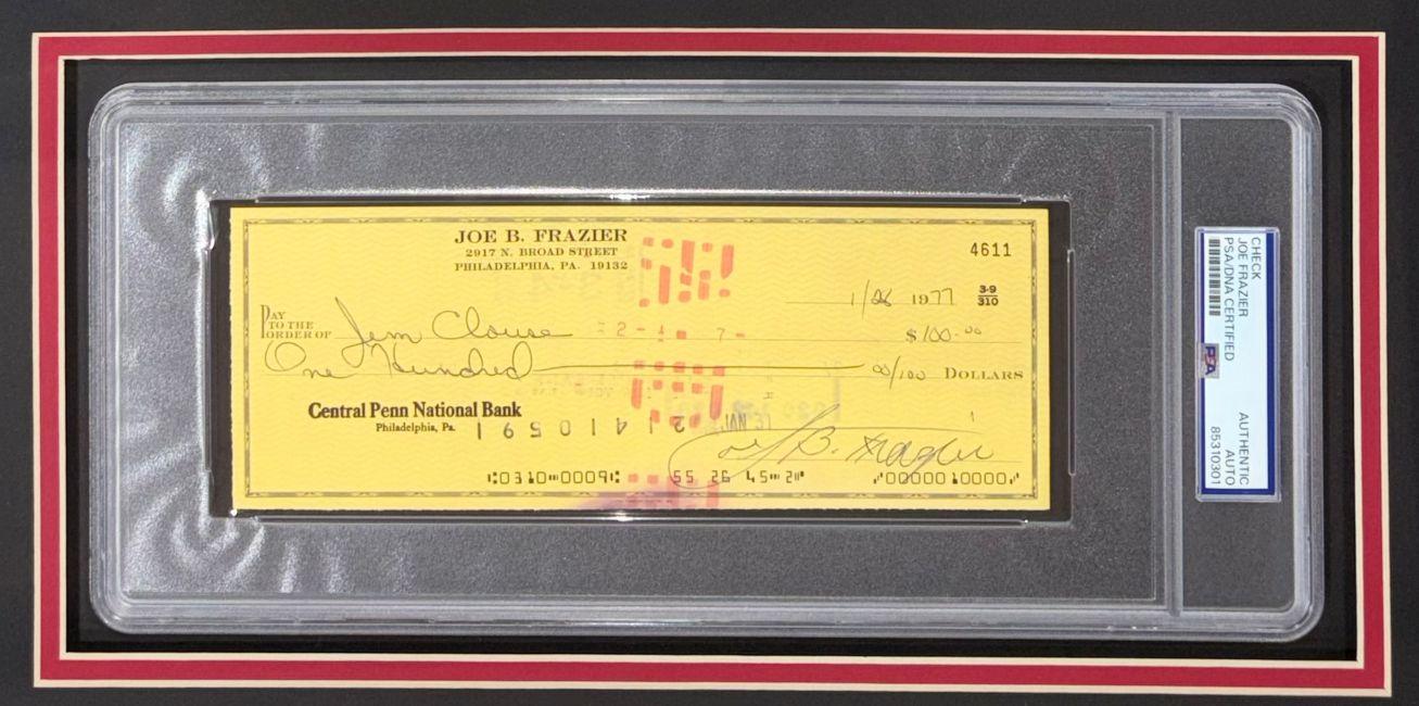 Joe Frazier Signed 1977 Custom Framed Bank Check (PSA)