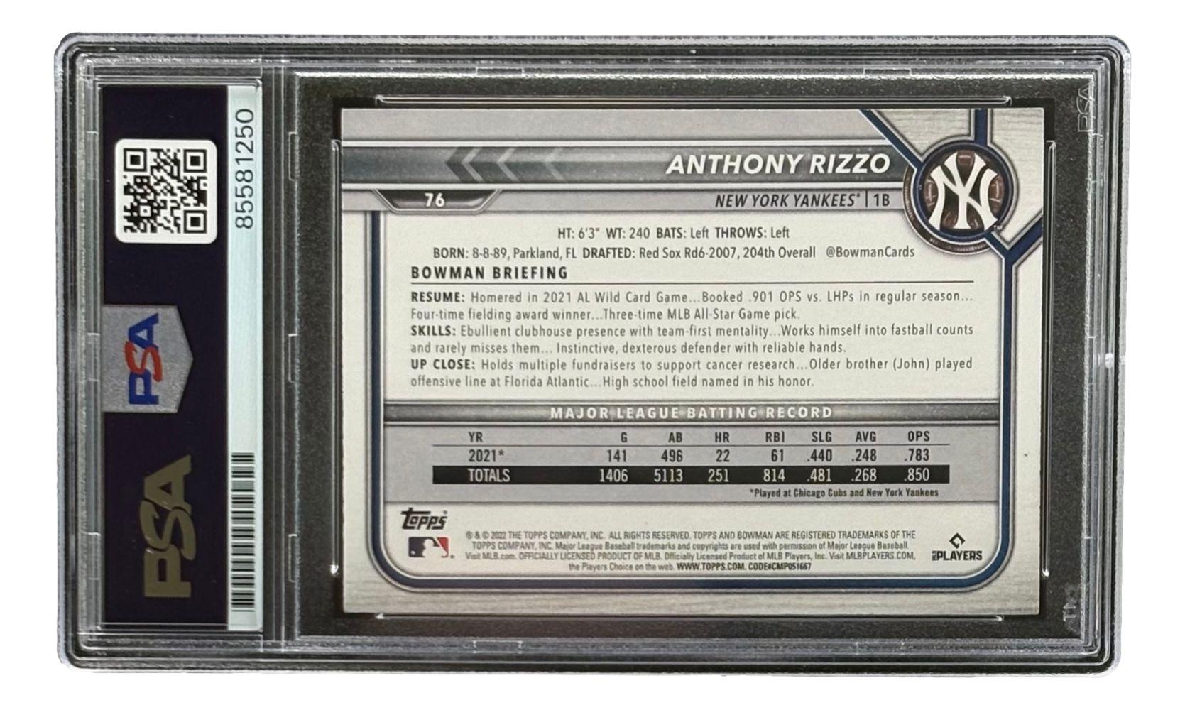 Anthony Rizzo Signed 2022 Topps #76 (PSA)