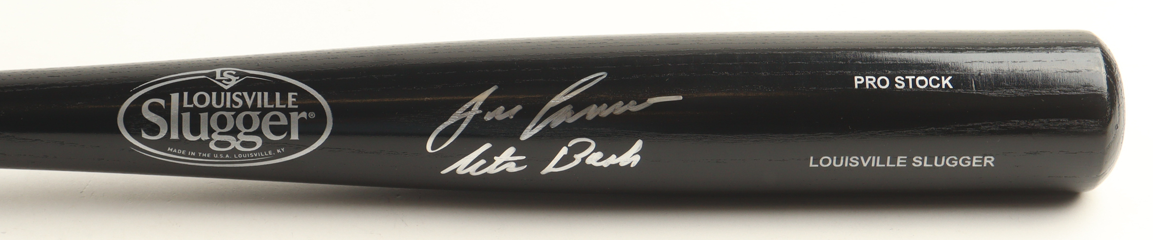 Louisville Slugger Pro Stock baseball bat. Hand-signed and inscribed by Jose Canseco (Oakland Athletics).