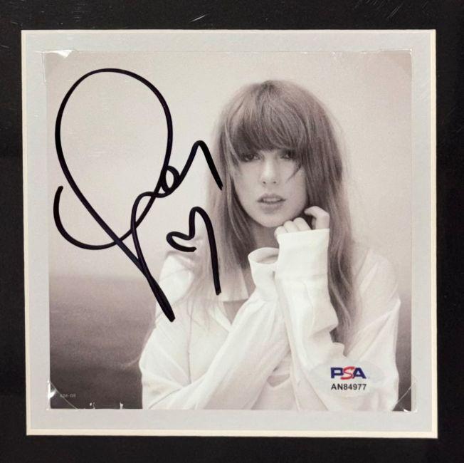 Custom frame measures 34" x 42" in size and features a CD insert that has been hand-signed by Taylor Swift. Display also features a Taylor Swift cardigan and (2) 8" x 10" photo's.