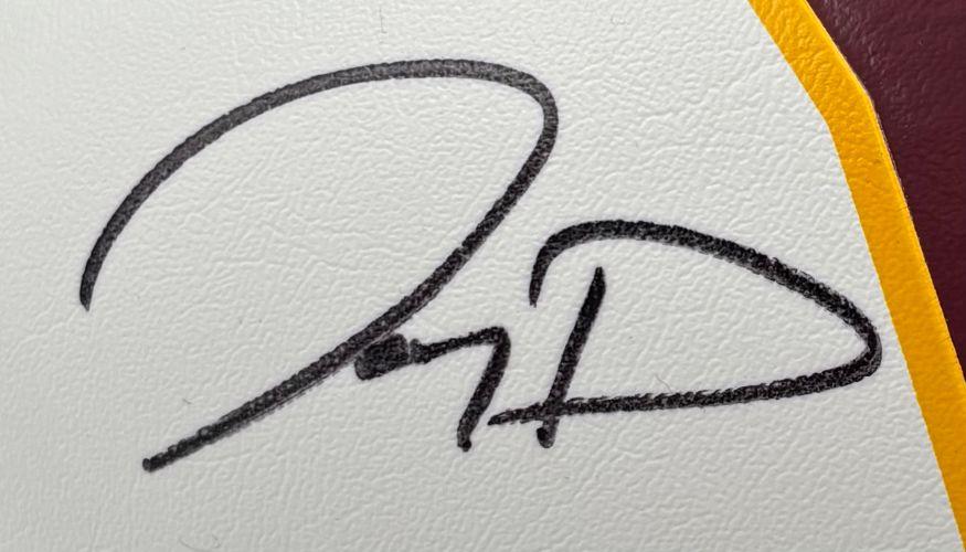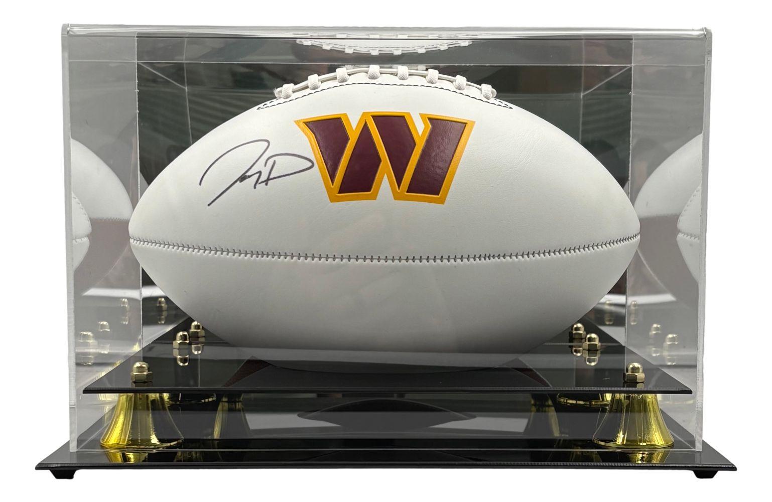 Washington Commanders logo football has been hand-signed by Jayden Daniels. Display case is included as shown.