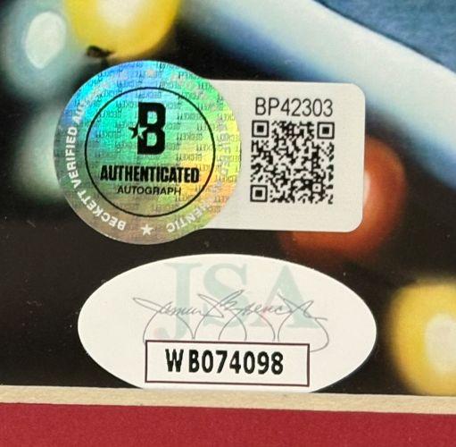The autograph includes an official James Spence Authentication (JSA) hologram as well as an official Beckett Authentication Services serially numbered hologram for authenticity purposes. The signing of this item was witnessed by JSA.