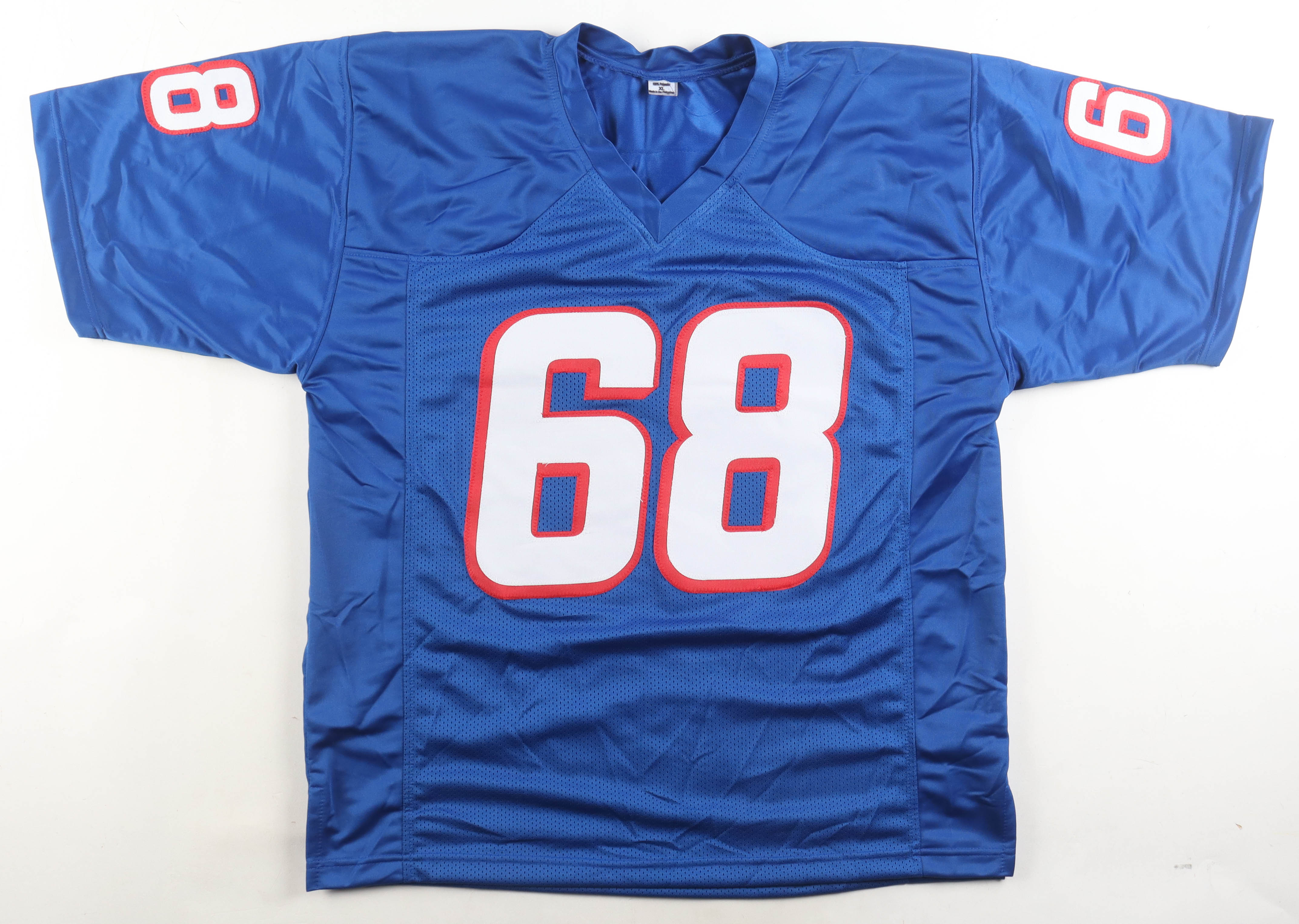 Custom jersey with everything sewn on, size XL. Hand-signed and inscribed by Max Lane (New England Patriots).