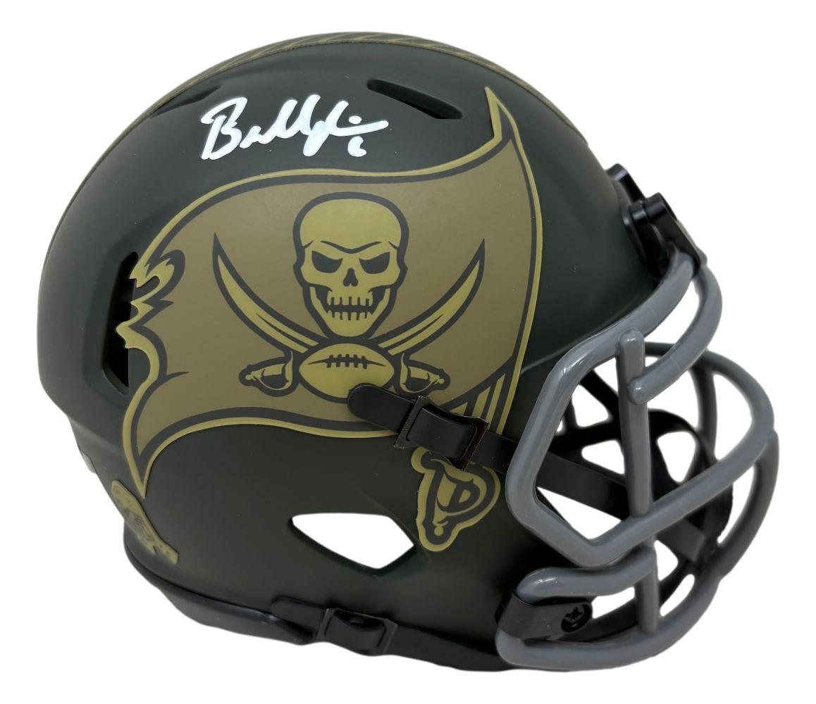 Riddell Tampa Bay Buccaneers salute to service alternate speed mini helmet has been hand-signed by Baker Mayfield.