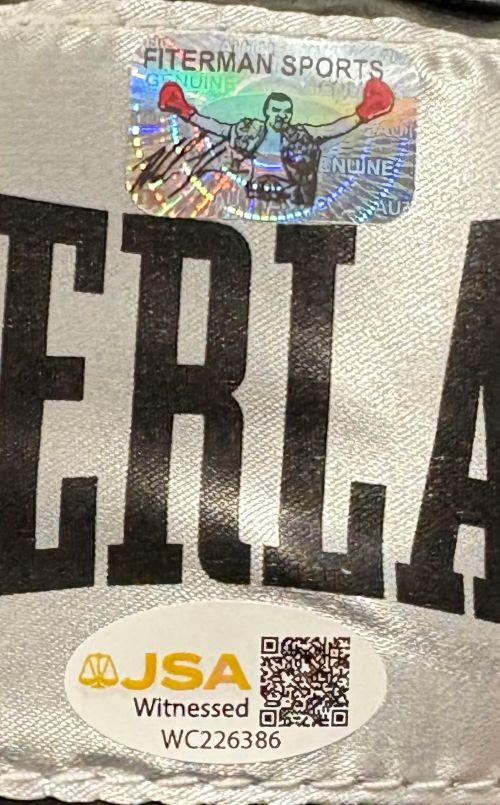 The autograph includes an official James Spence Authentication (JSA) hologram as well as an official Mike Tyson hologram from Fiterman Sports Group for authenticity purposes. The signing of this item was witnessed by JSA.