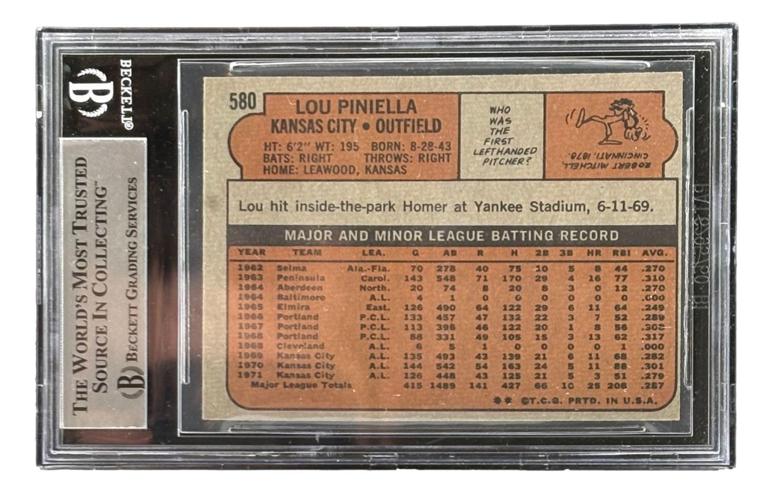 Lou Piniella Signed 1972 Topps #580 (BGS)