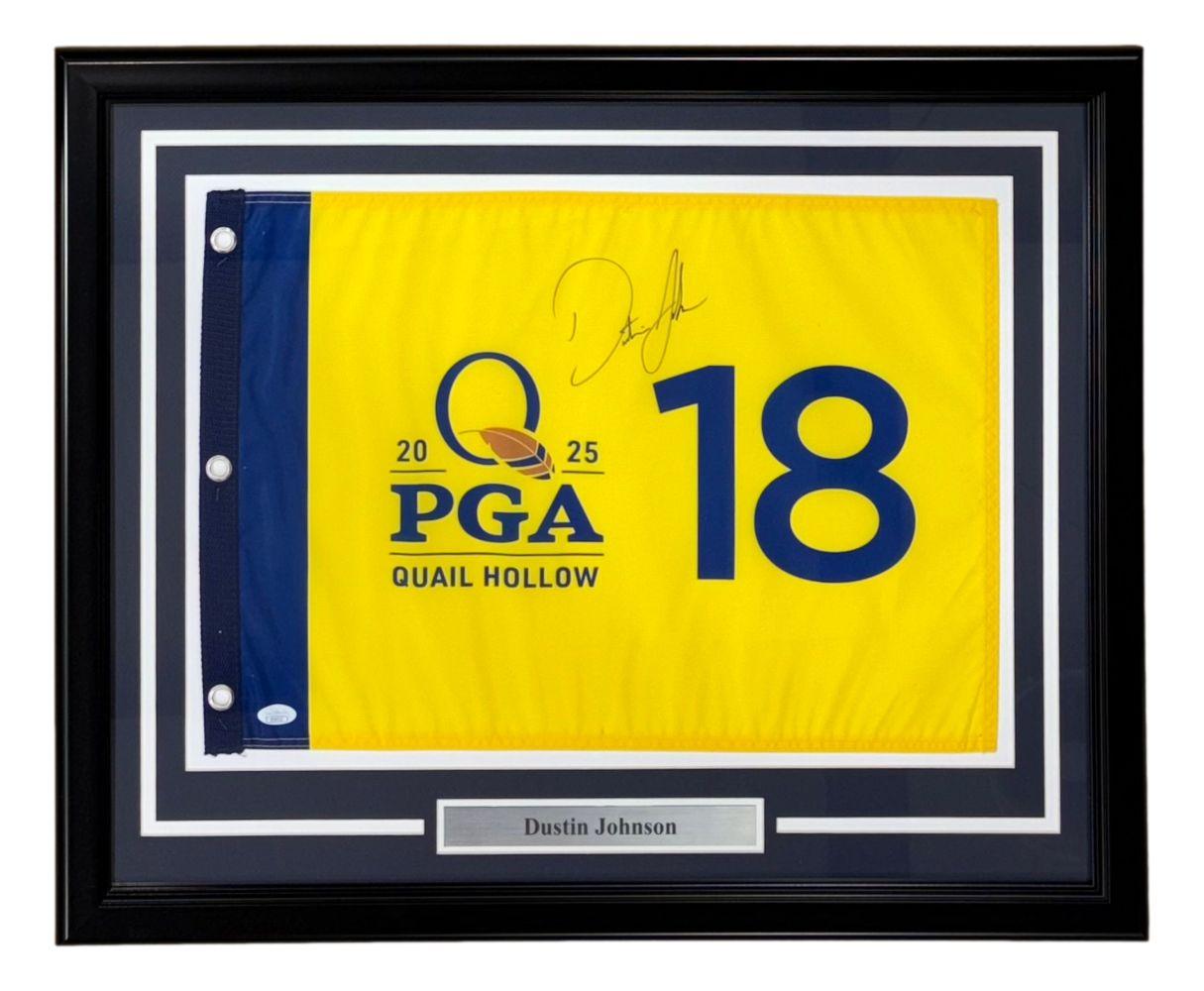 Dustin Johnson Signed 2025 PGA Championship Custom Framed Golf Flag (JSA)