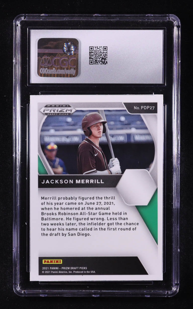 Jackson Merrill 2021 Panini Prizm Draft Picks #27 RC (CGC 8)