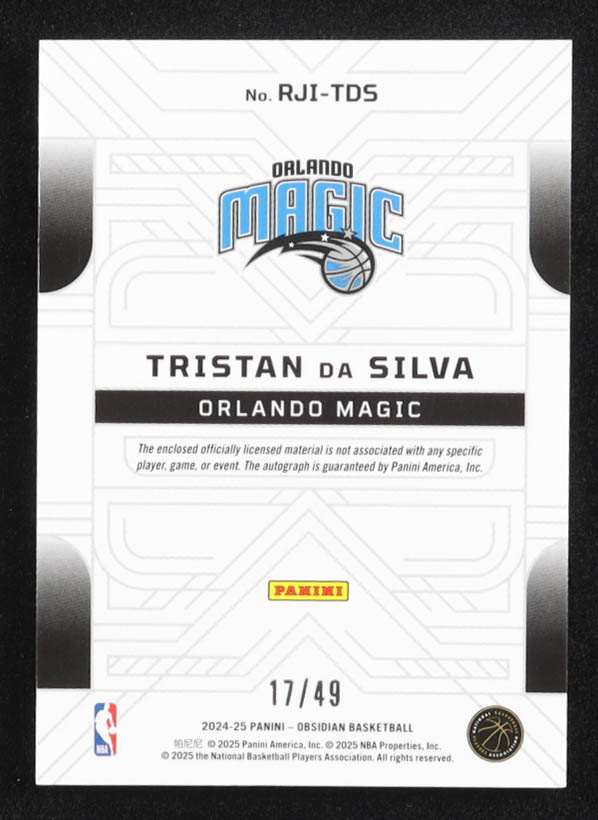 Tristan da Silva 2024-25 Panini Obsidian Rookie Jersey Ink Electric Etch Pink Flood #7 #17/49 RC