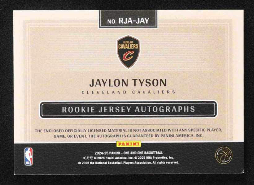 Jaylon Tyson 2024-25 Panini One and One Rookie Jersey Autographs #1 #54/99