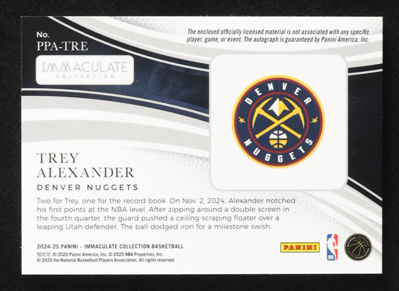Trey Alexander 2024-25 Immaculate Collection Premium Patch Autographs #80 #28/50 RC