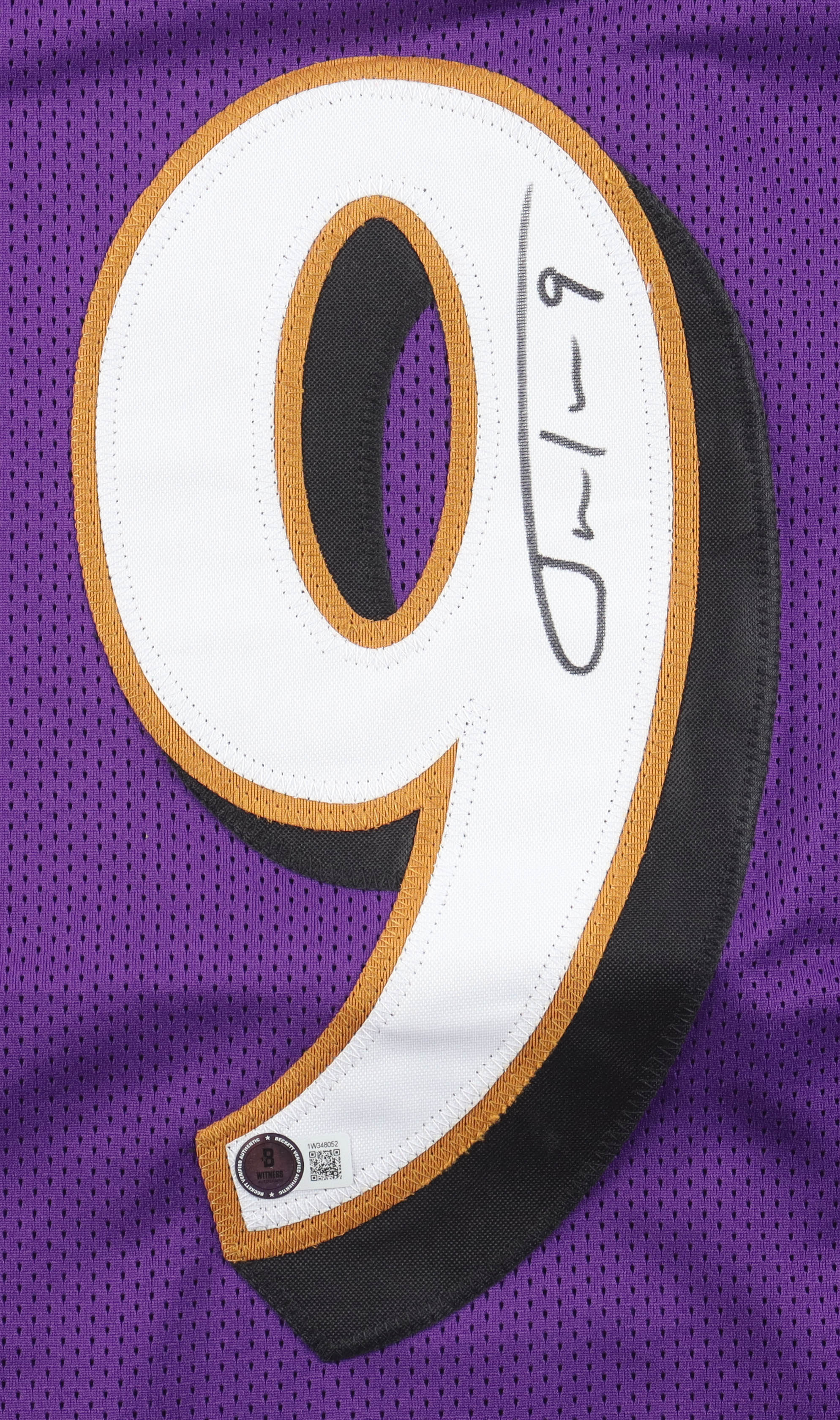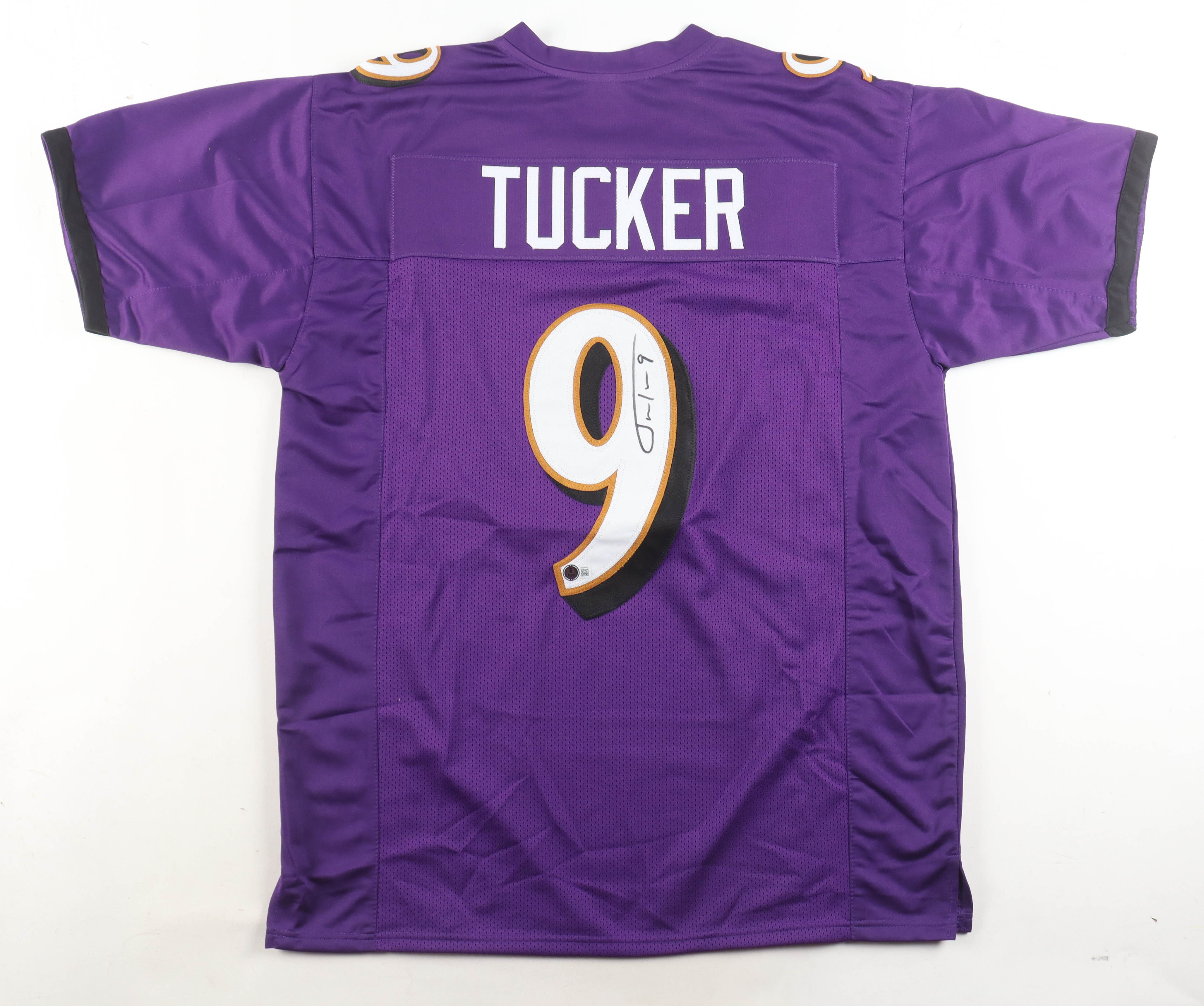 Custom jersey with everything sewn on, size XL. Hand-signed by Justin Tucker (Baltimore Ravens).