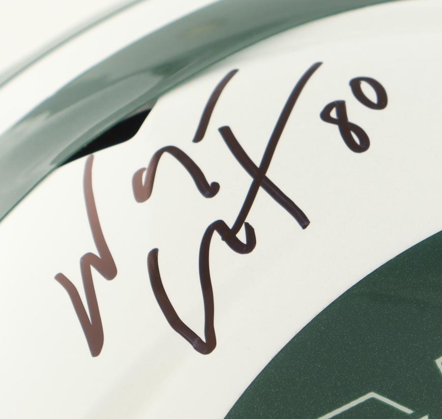 Riddell New York Jets full-size throwback alternate speed replica helmet has been hand-signed by Wayne Chrebet.