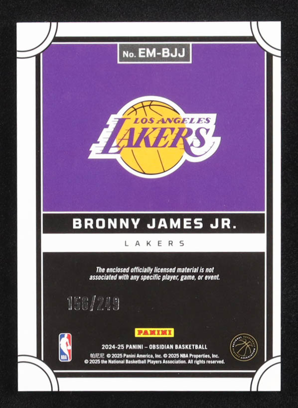 Bronny James Jr. 2024-25 Panini Obsidian Eclipse Materials #18 #156/249 RC