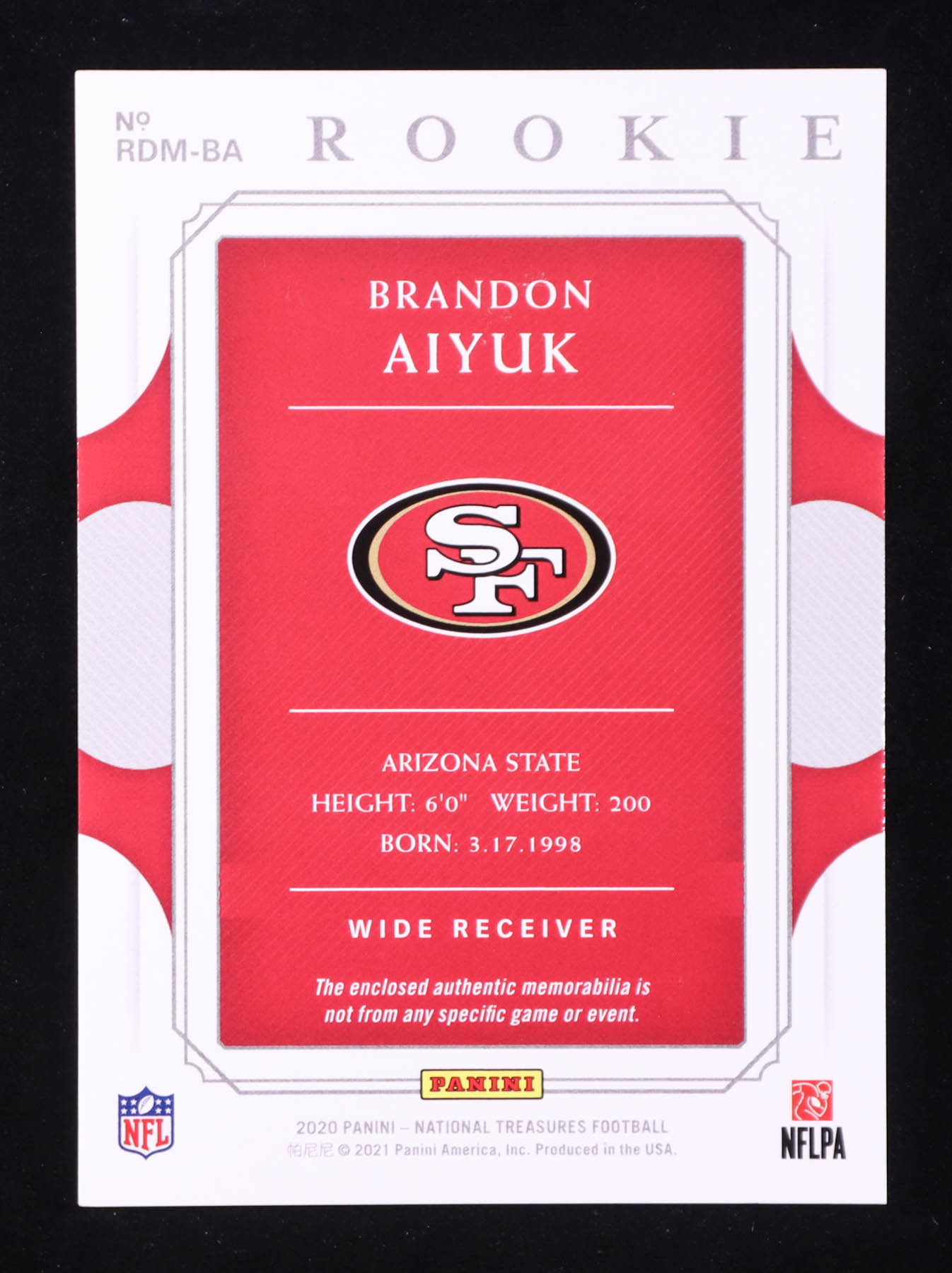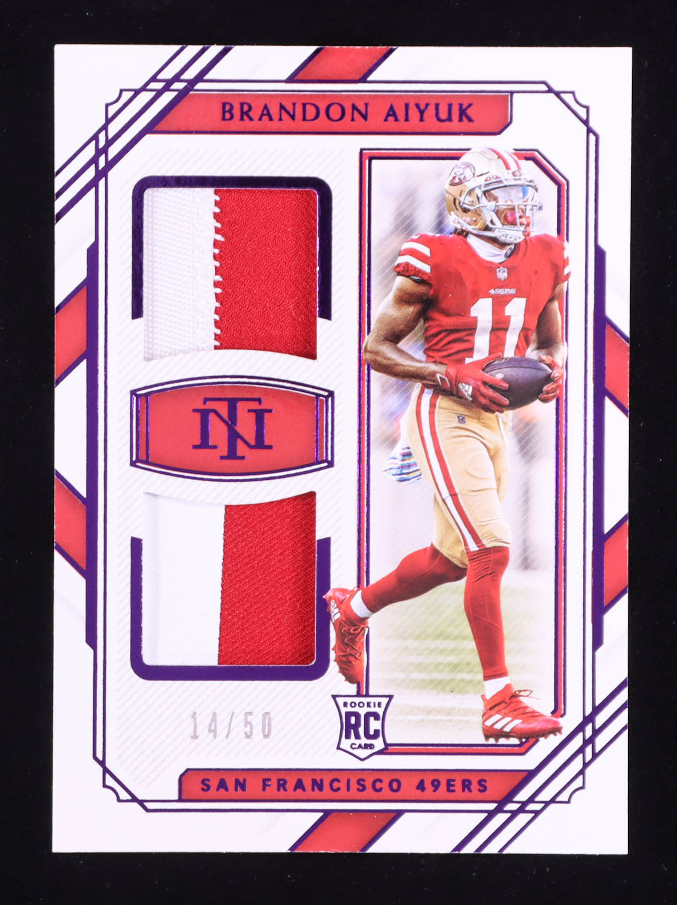 Brandon Aiyuk 2020 Panini National Treasures Rookie Dual Materials Purple #27 RC #14/50