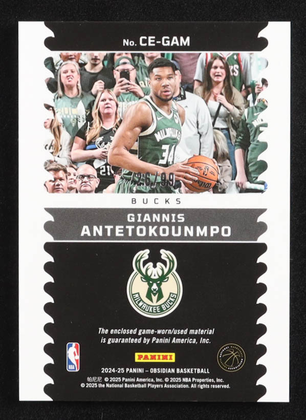Giannis Antetokounmpo 2024-25 Panini Obsidian Cutting Edge Memorabilia Electric Etch Orange Flood #3 #26/99