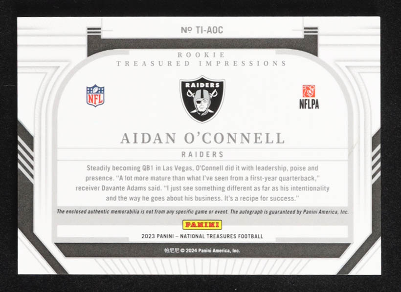 Aidan O'Connell 2023 Panini National Treasures Rookie Treasured Impressions #TI-AOC #38/99 RC