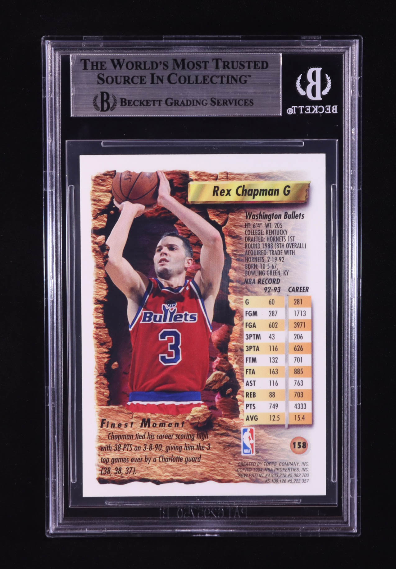 Rex Chapman 1993-94 Topps Finest #158 (BGS 7)