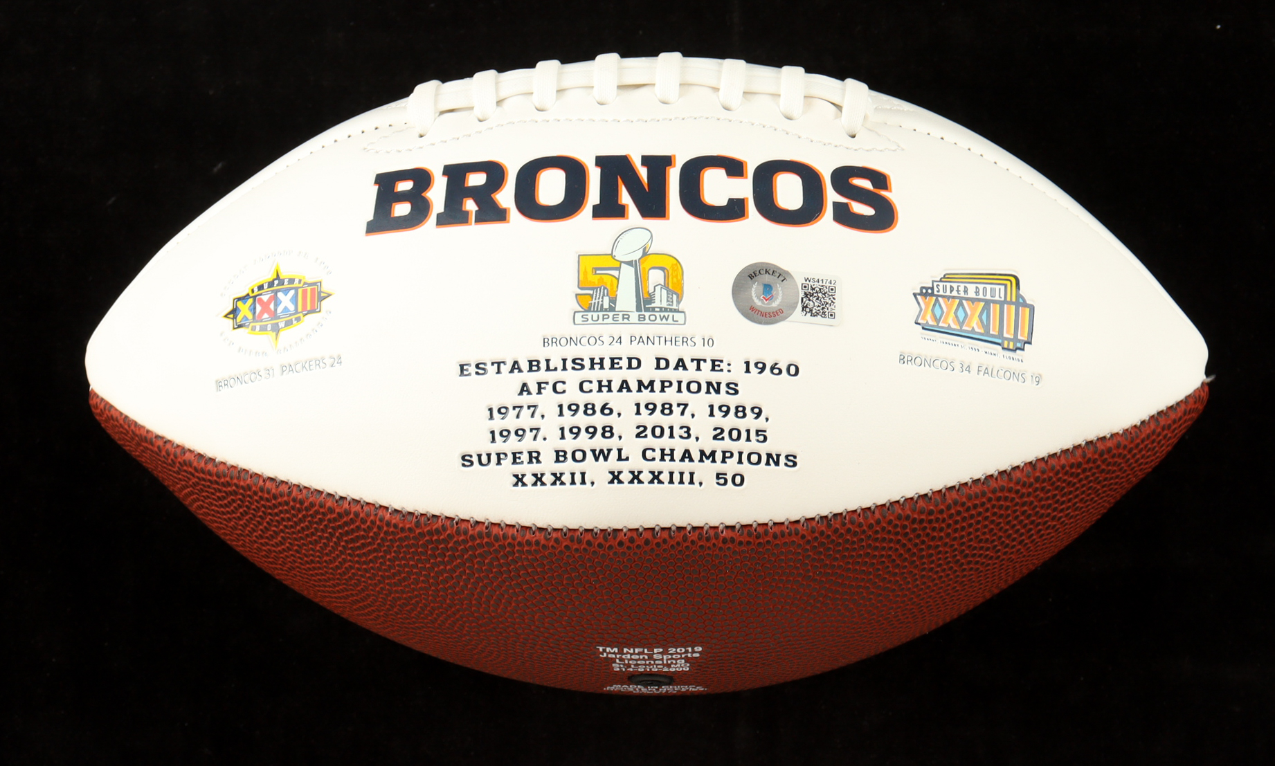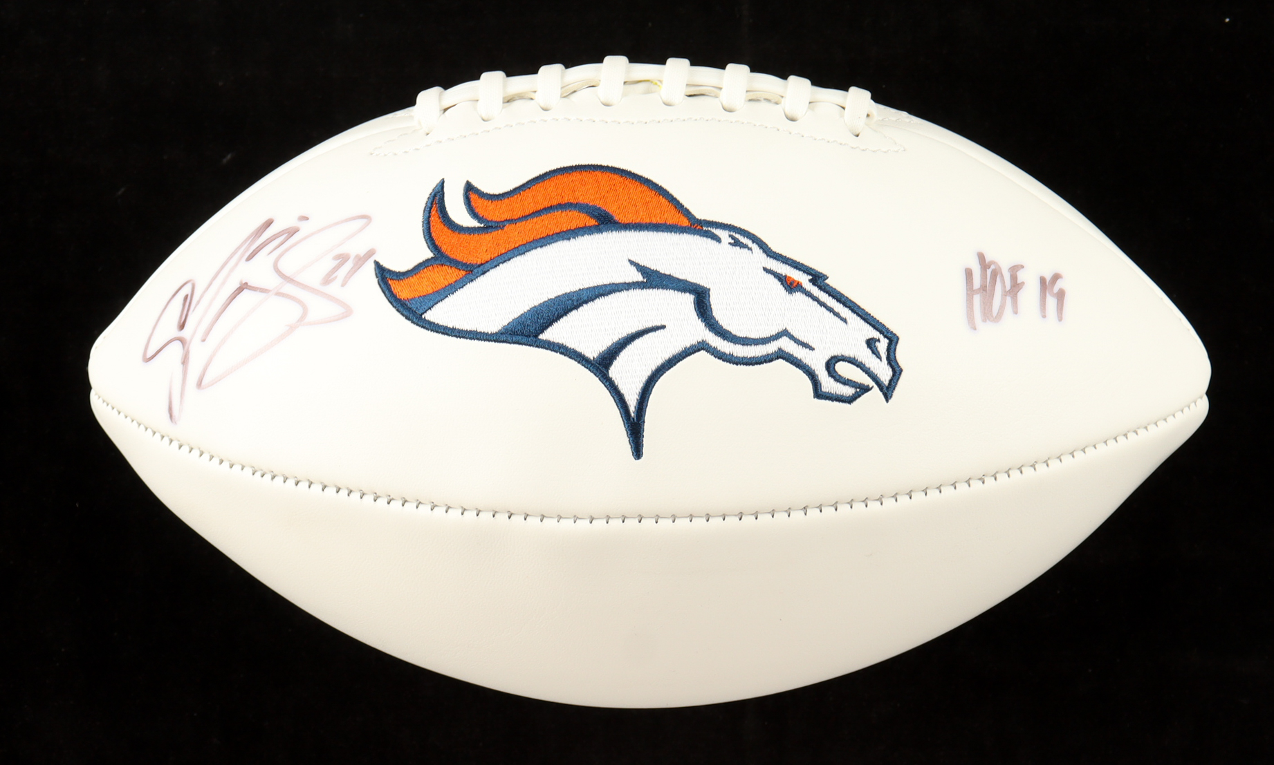 Denver Broncos logo football has been hand-signed and inscribed by Champ Bailey (HOF).