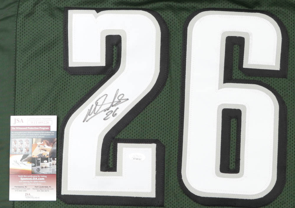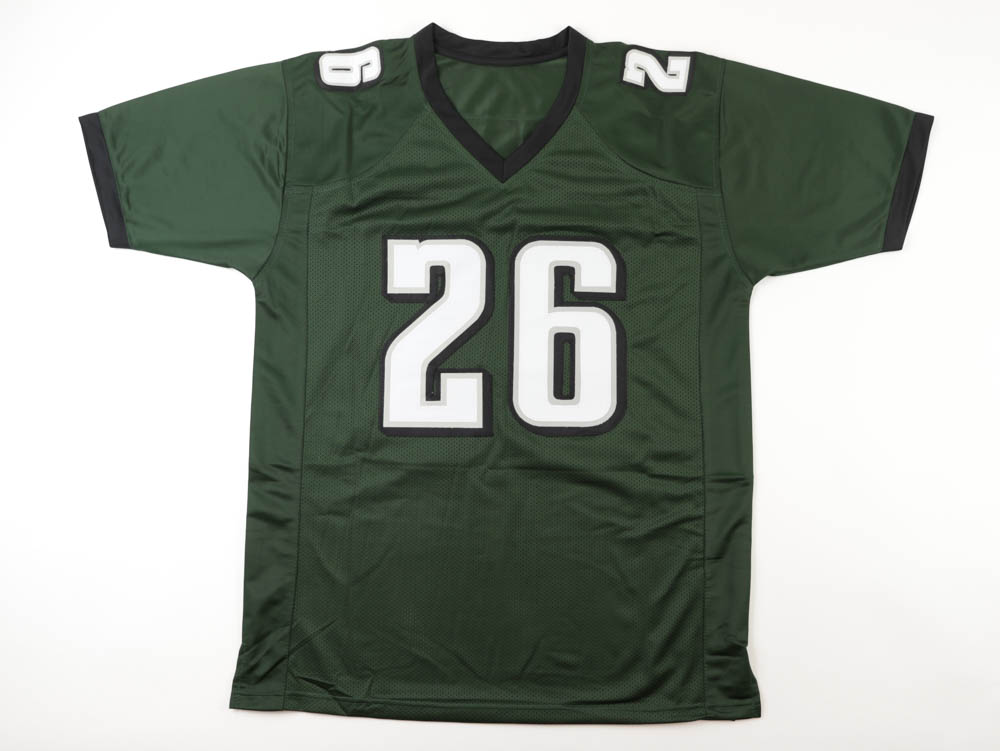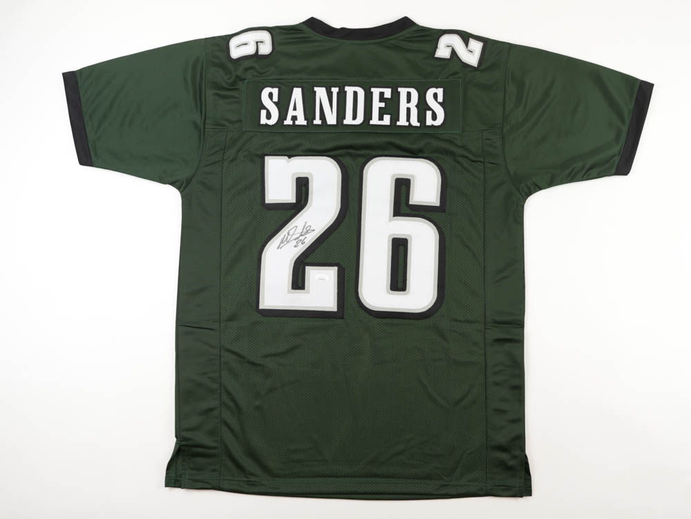 Custom jersey. Everything sewn on, size XL. Hand-signed by Miles Sanders.