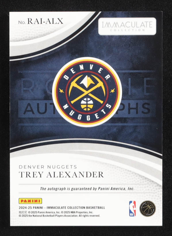 Trey Alexander 2024-25 Immaculate Collection Rookie Autographs International #26 #18/24 RC