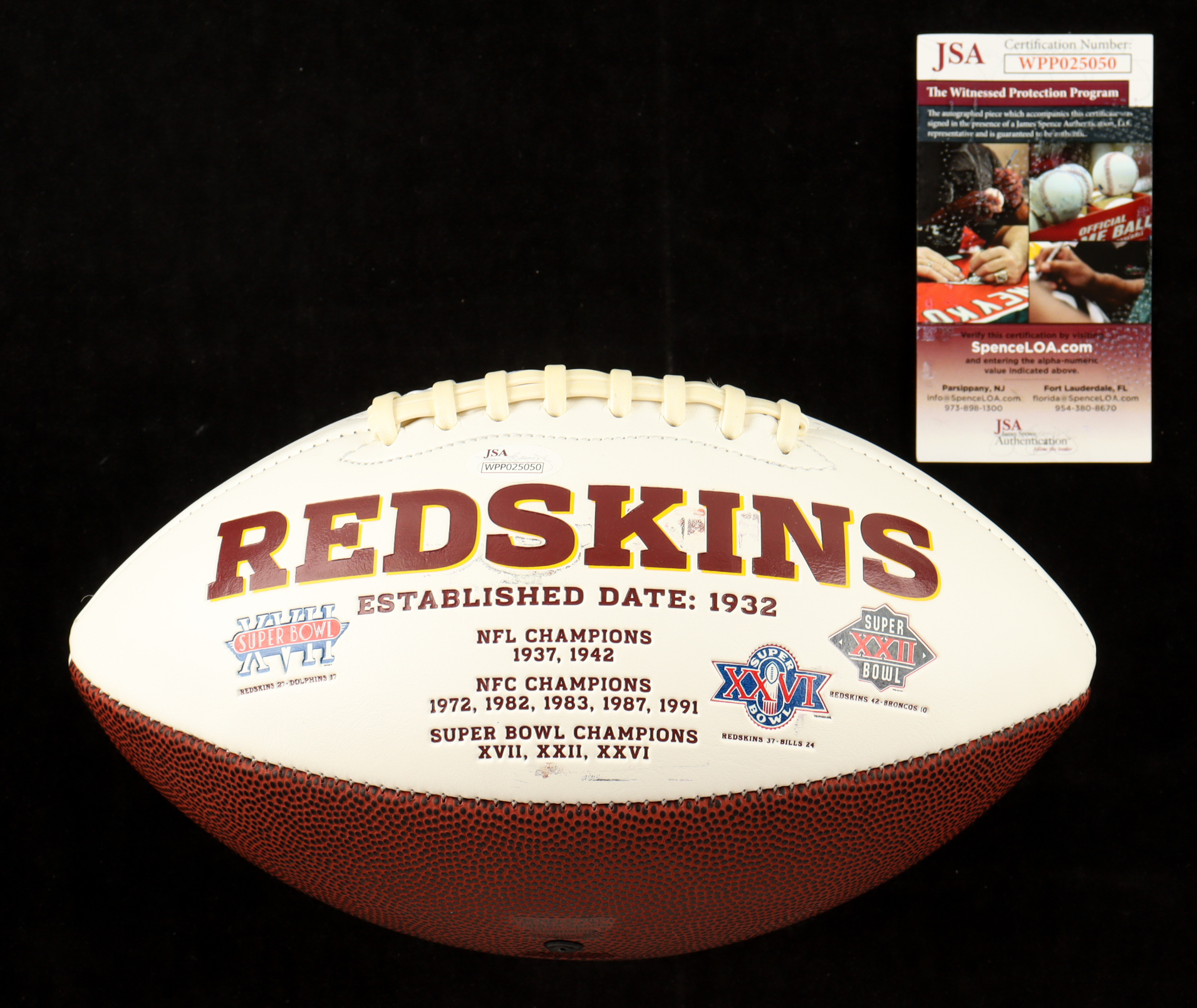 Washington Redskins logo football. Hand-signed and inscribed by Sonny Jurgensen (HOF).